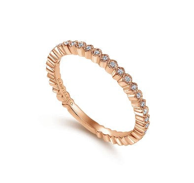 14K Rose Gold Scalloped Stackable Diamond Band Ring
