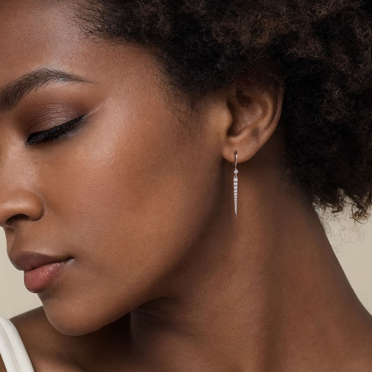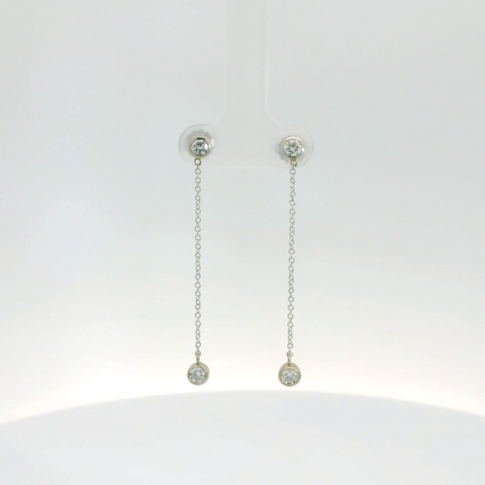 14K White Gold Graduating Diamond Huggy Drop Earrings