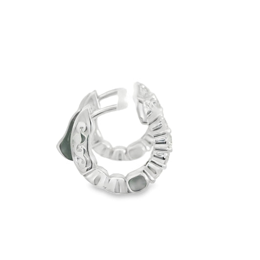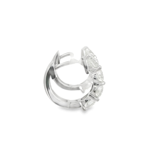14K White Gold Graduating Diamond J Hoop Stud Earrings
