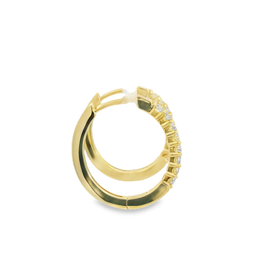 14K Yellow Gold Hinged Diamond Hoop Earrings