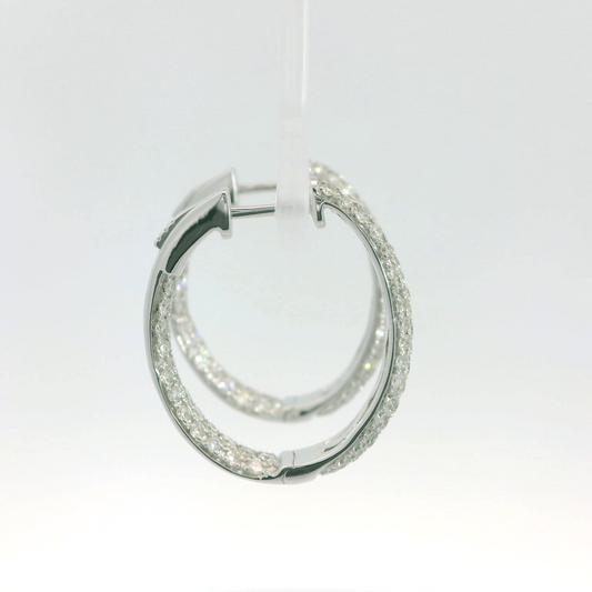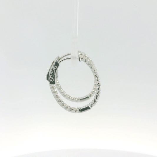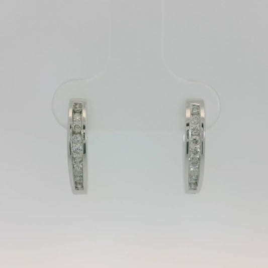 14K White Gold Channel Set Diamond Hinged Hoop Earrings