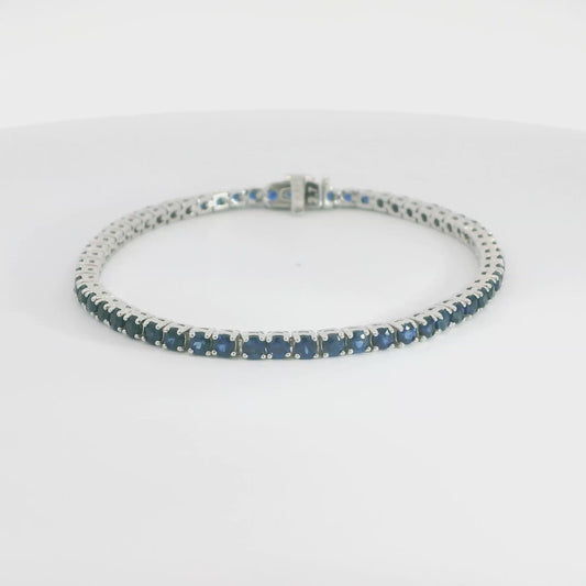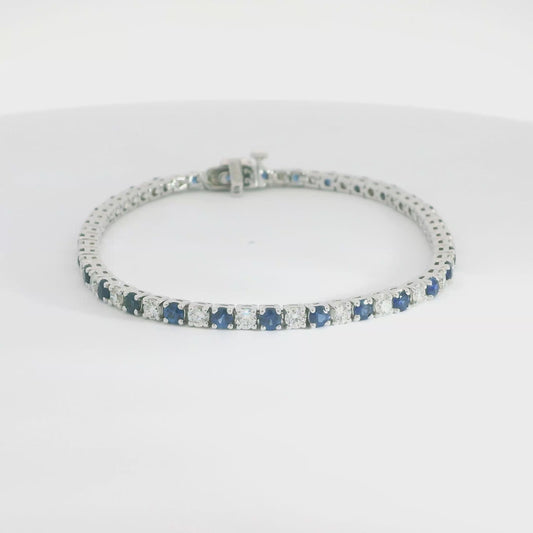 14K White Gold Natural Blue Sapphire and Diamond Bracelet