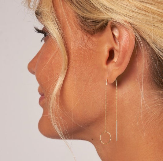 14K gold threader earrings slide gracefully into your ears to create an elegant easy to wear dangle style earring.
