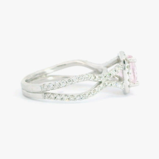 14K White Gold Blue Sapphire Double Halo Diamond Ring