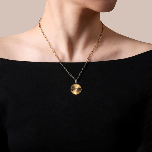 Diamond Cut - 18 inch 14K Yellow Gold Textured Diamond Medallion Hollow Chain Necklace
