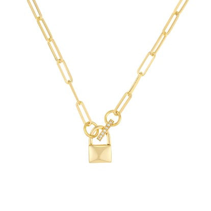 14K Yellow Gold Rectangular ID Pendant Necklace with Twisted Rope Frame