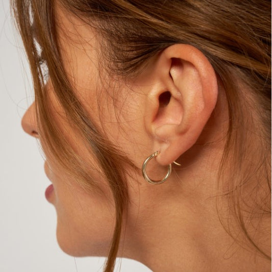 14K Yellow Gold 3mm x 20mm Polished Hoop Earrings - Available in Yellow, White, and Rose Gold