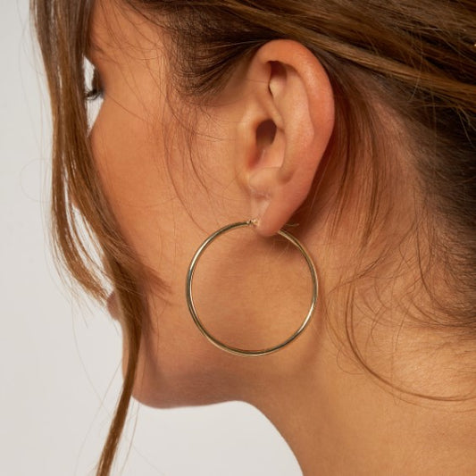 14K Yellow Gold 2mm x 40mm Polished Hoop Earrings - Available in Yellow, White, and Rose Gold (Copy)