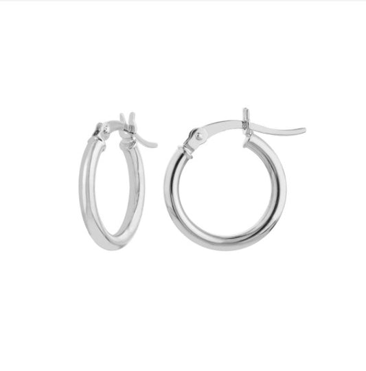 14K White Gold 2mm x 15mm Polished Hoop Earrings - Available in Yellow, White, and Rose Gold