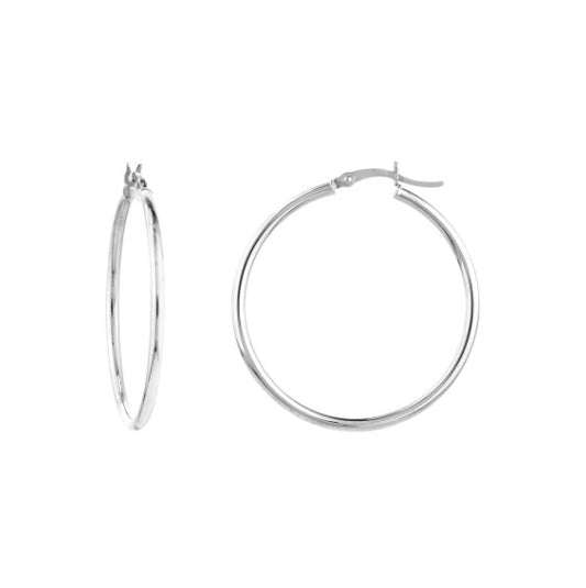 14K White Gold 2mm x 25mm Polished Hoop Earrings - Available in Yellow, White, and Rose Gold