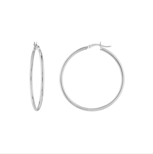 14K White Gold 2mm x 40mm Polished Hoop Earrings - Available in Yellow, White, and Rose Gold