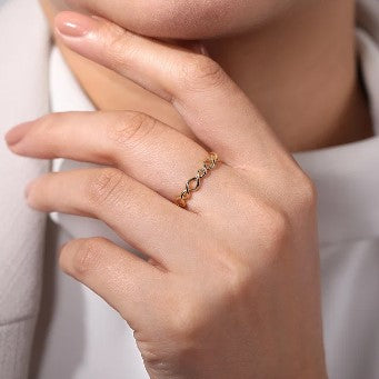 14K Yellow Gold Diamond Twisted Ladies Ring