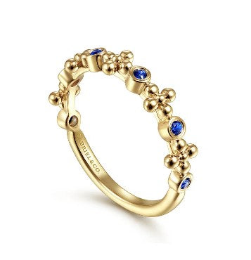 14K Yellow Gold Sapphire and Bujukan Bead Station Ring