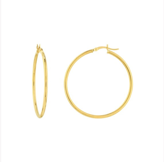 14K Yellow Gold 2mm x 40mm Polished Hoop Earrings - Available in Yellow, White, and Rose Gold