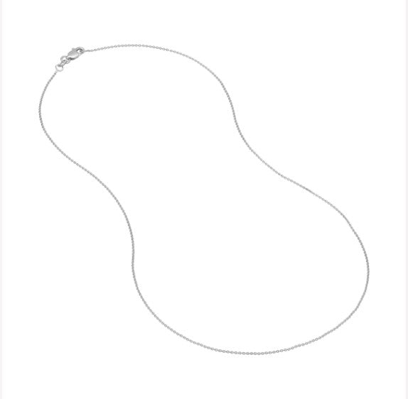 This gold cable chain necklace is a great classic style. Add your favorite charm or pendant for a customized look. Available in yellow or white gold, this chain is 0.9mm wide and fastens with a lobster claw clasp.