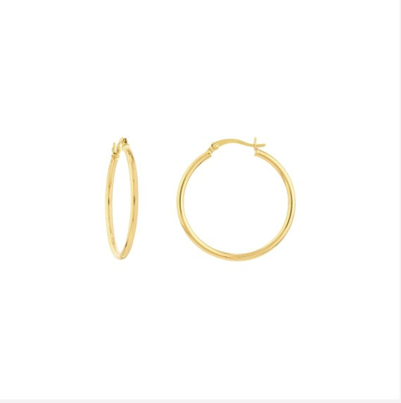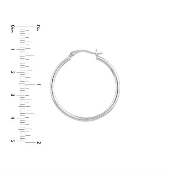 14K White Gold 2mm x 30mm Polished Hoop Earrings - Available in Yellow, White, and Rose Gold