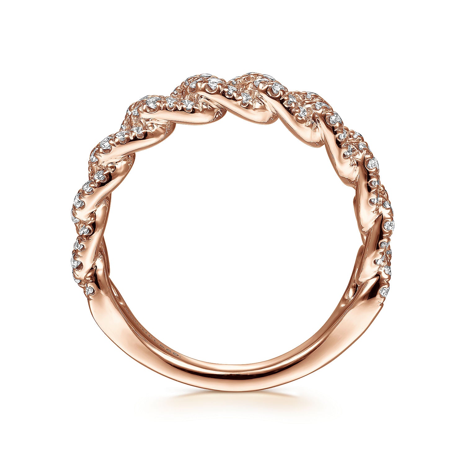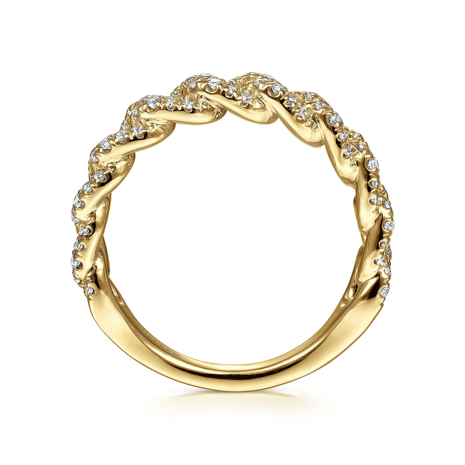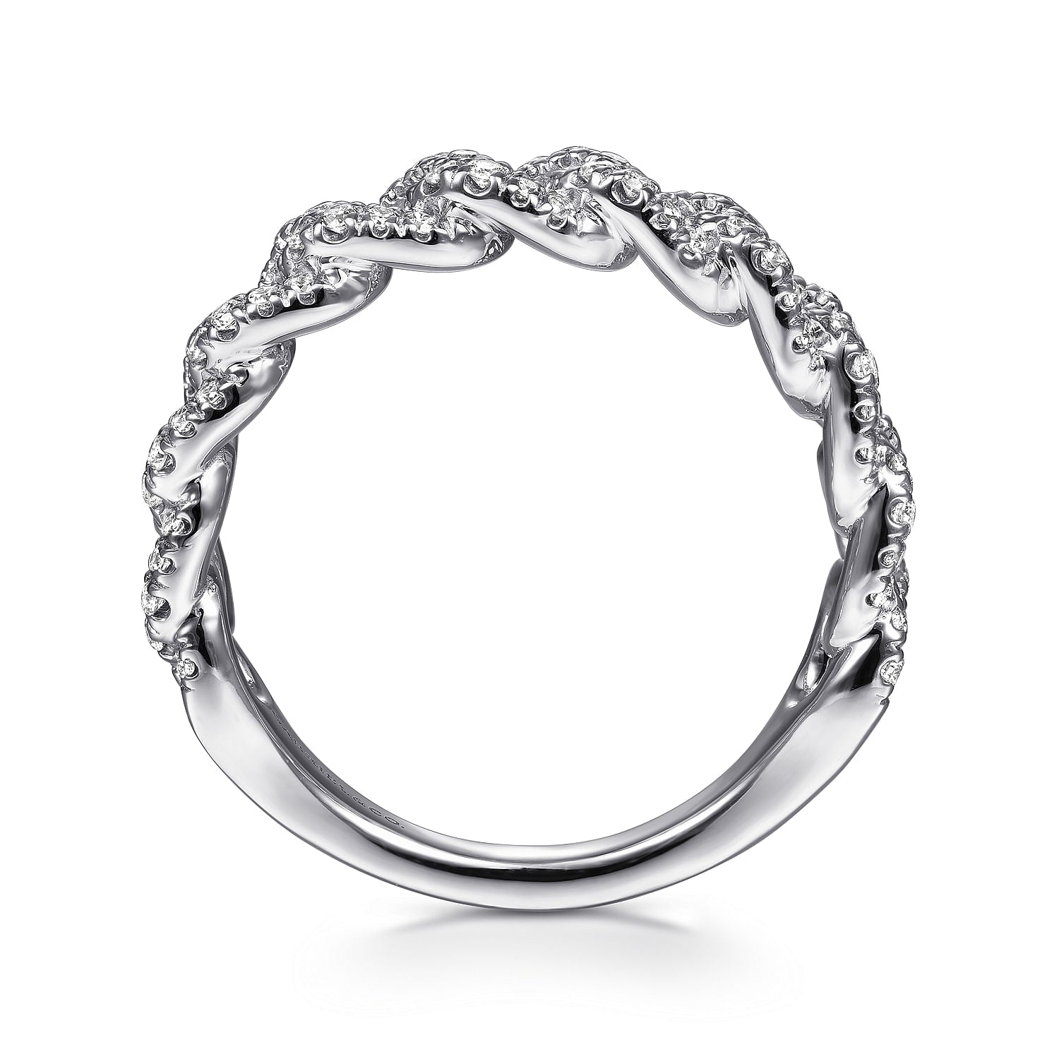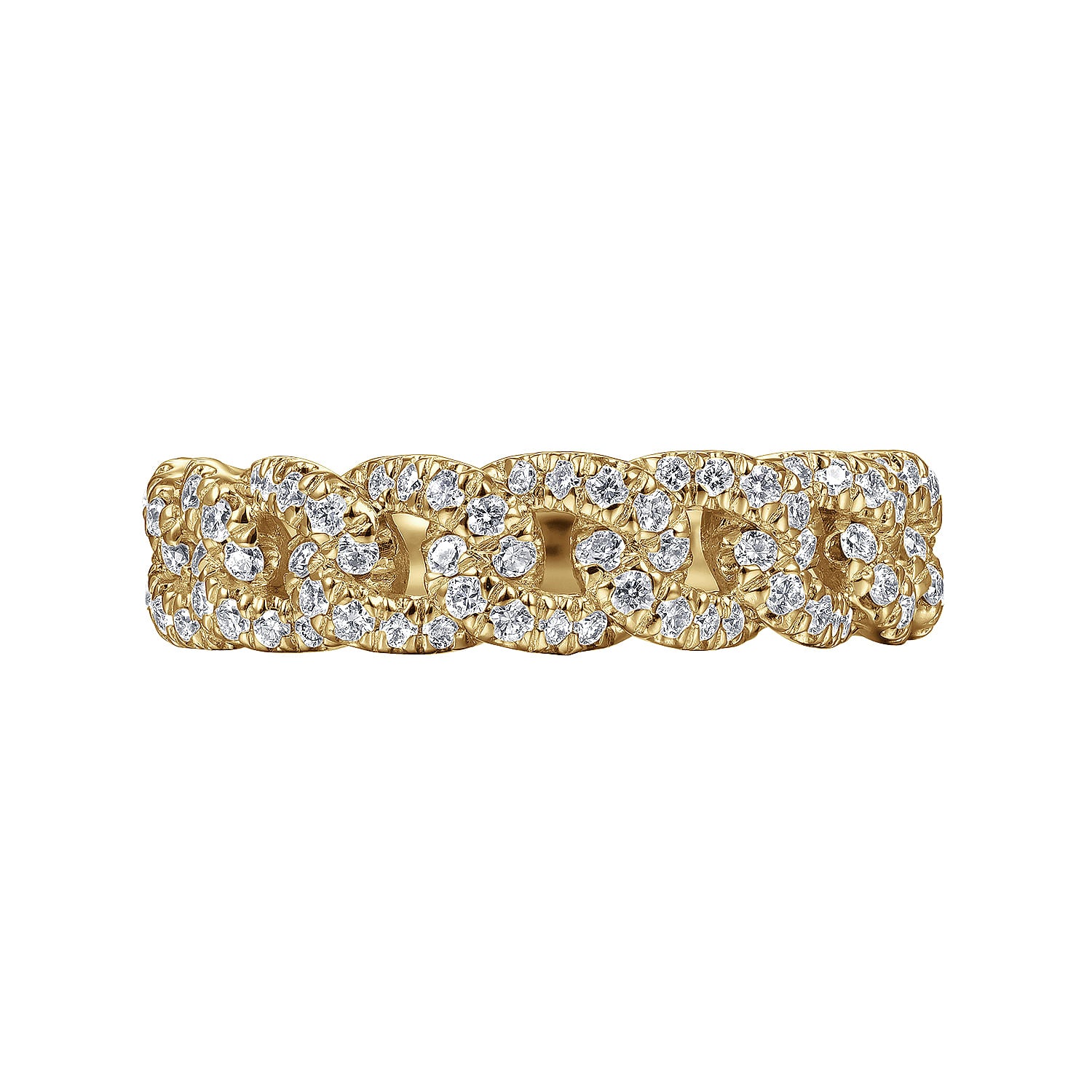 Crafted from exquisite 14K white gold, this stunning stackable ring features a captivating chain link motif. Encircled by dazzling 0.45ct of natural diamonds, this sculpted ring is sure to make a statement and catch the eye of all who see it. Wear it alone or add it to your stack for a truly beautiful look. In-Stock in 14K white gold finger size 6.5 Please call to order other sizes or gold colors.