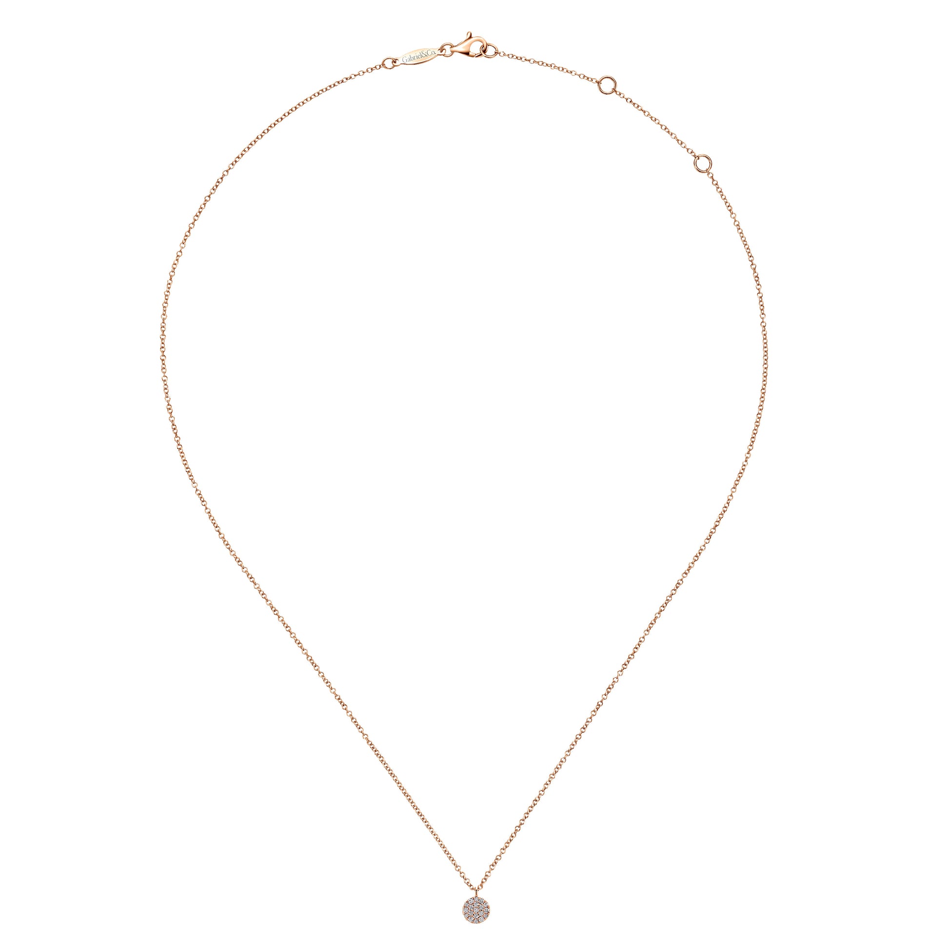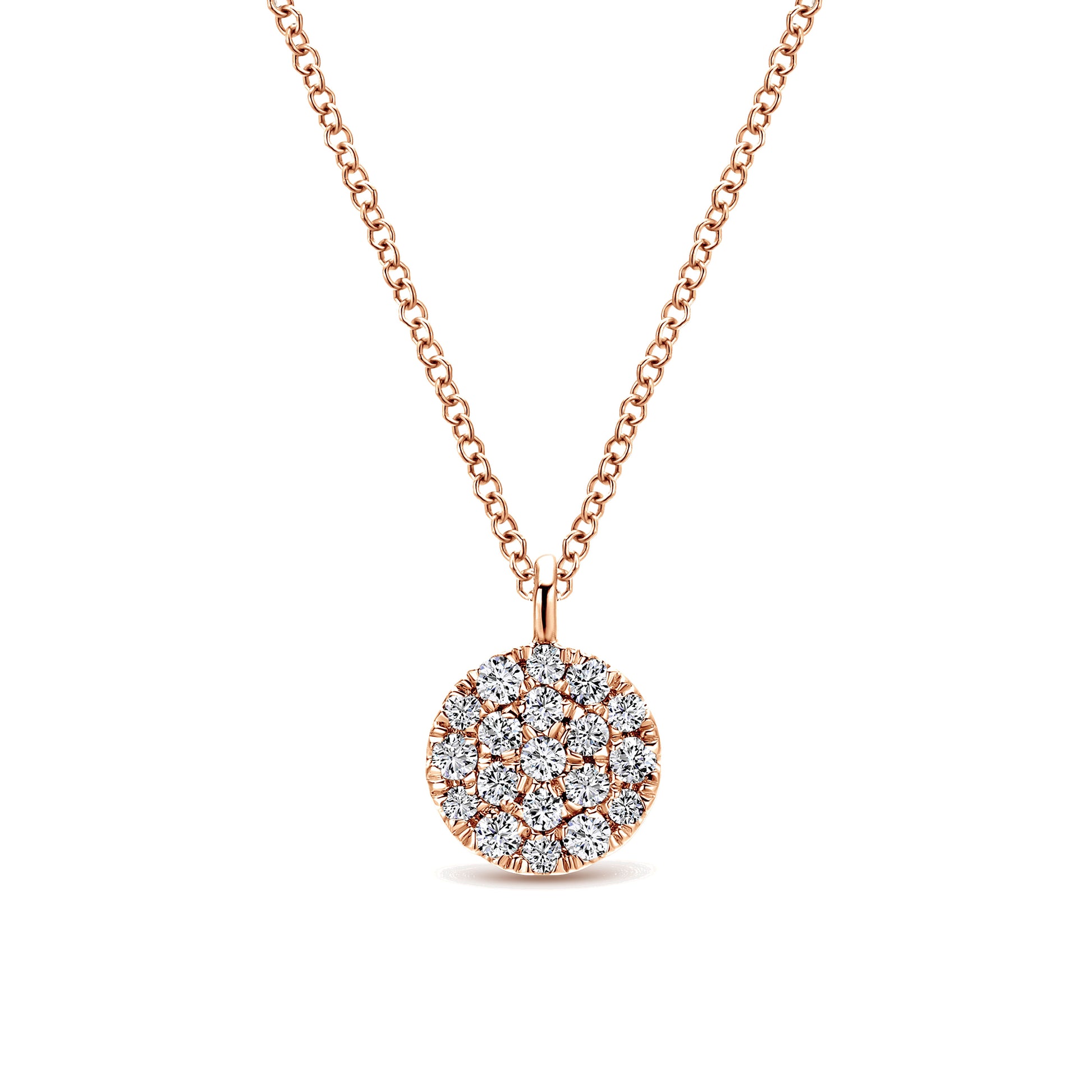 14K Rose Gold Round Pave Diamond Disc Pendant Necklace