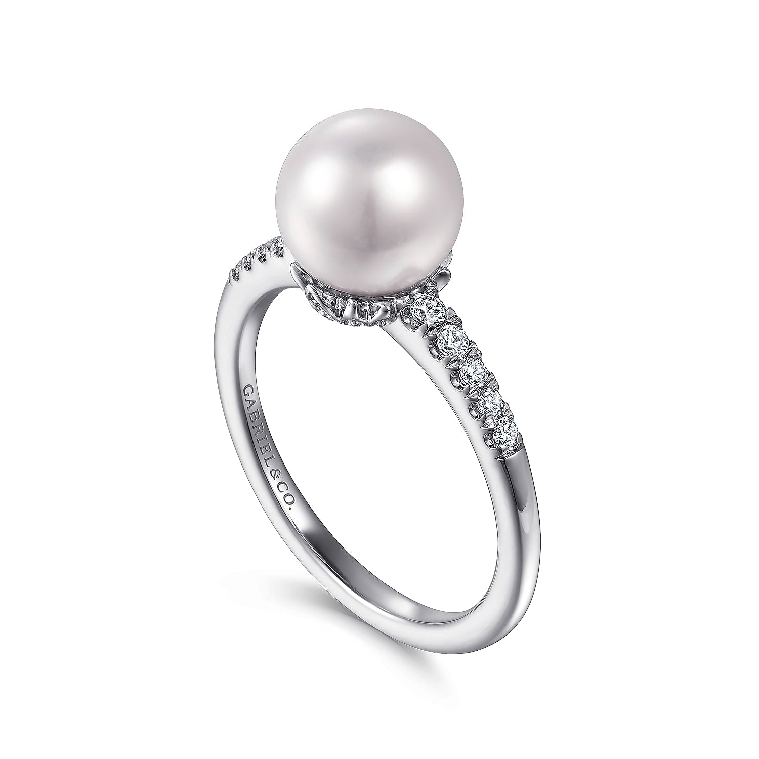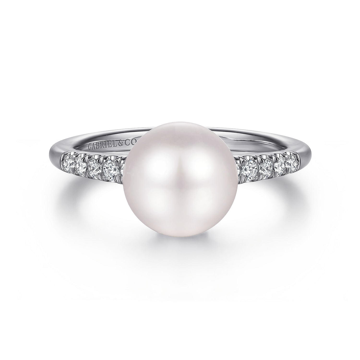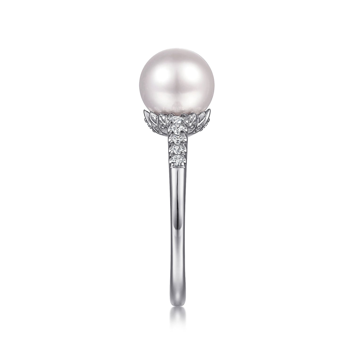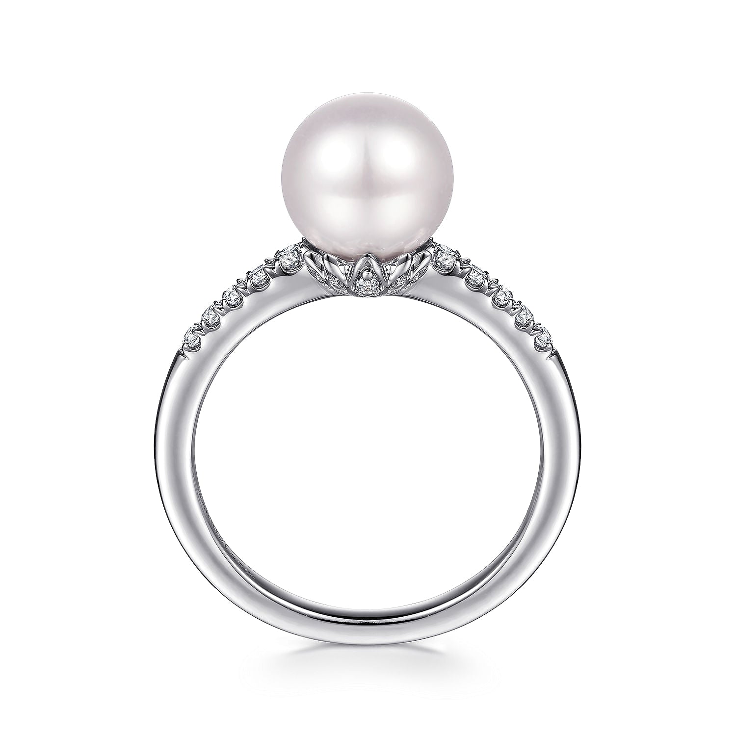 14K White Gold Classic Cultured Pearl Diamond Ring