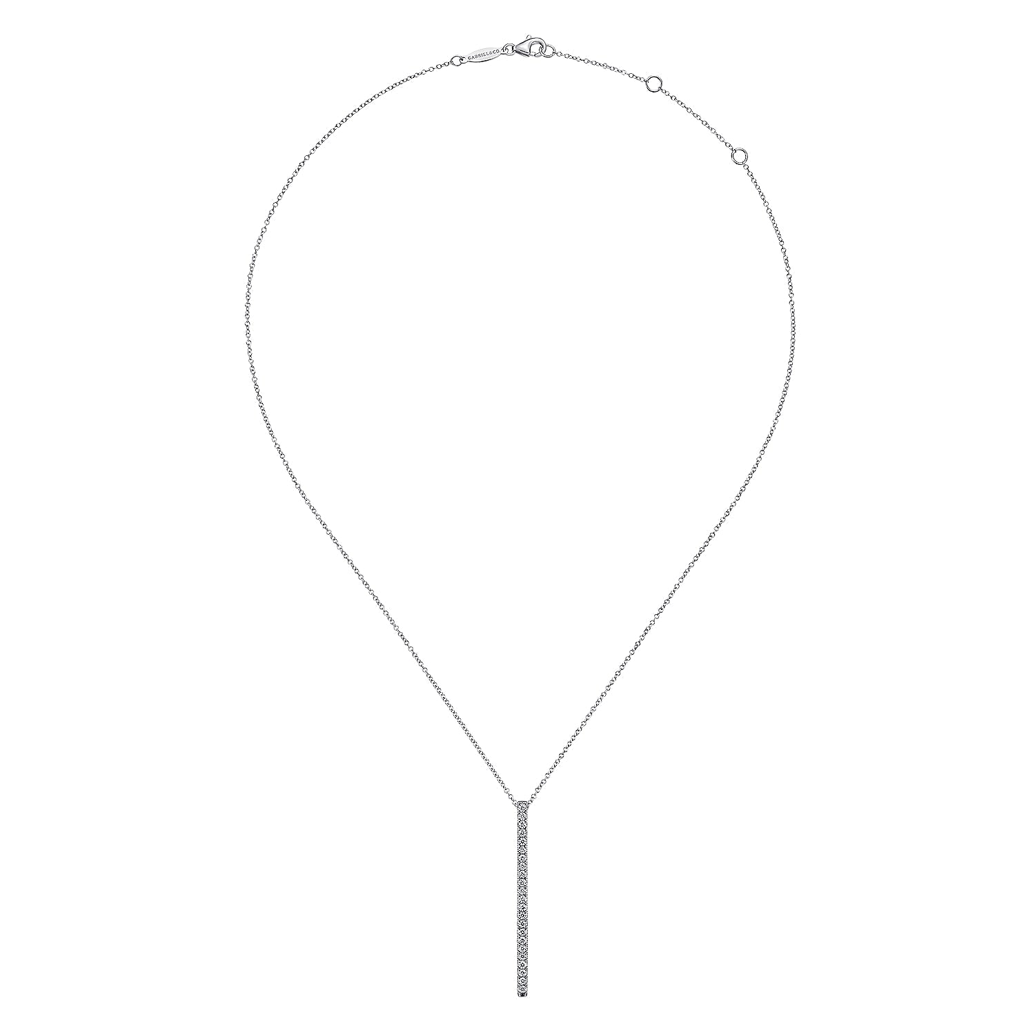 Crafted with stunning 14K white gold, this diamond bar pendant necklace is the epitome of elegance. Its .49 total weight of natural diamonds sparkle effortlessly along the 17.5 inch chain, making it the perfect accessory for any occasion. Elevate your style with this timeless and luxurious piece.