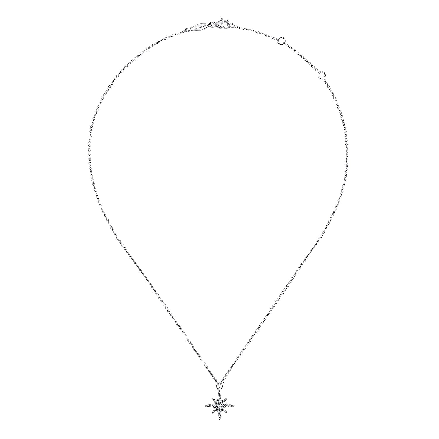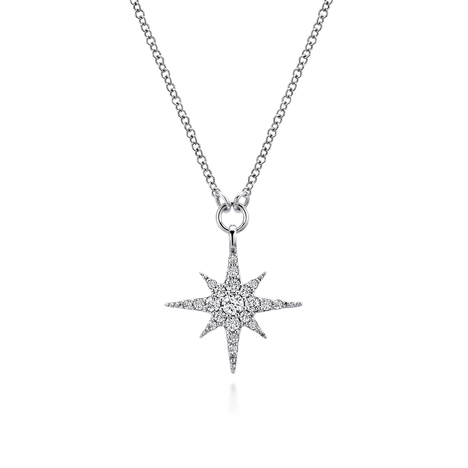 Indulge in the heavenly brilliance of this 14K white gold pendant necklace, adorned with a sparkling .25cts diamond starburst. Perfect for any occasion, this stunning necklace will complete any look with an irresistible touch of glamour and luxury.