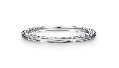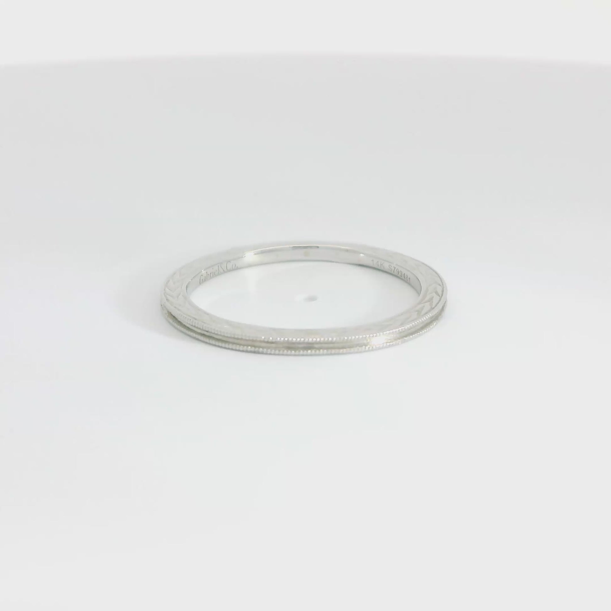 14K White Gold Engraved Milgrain Slim Stackable Ring