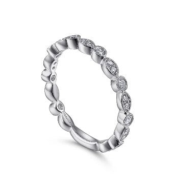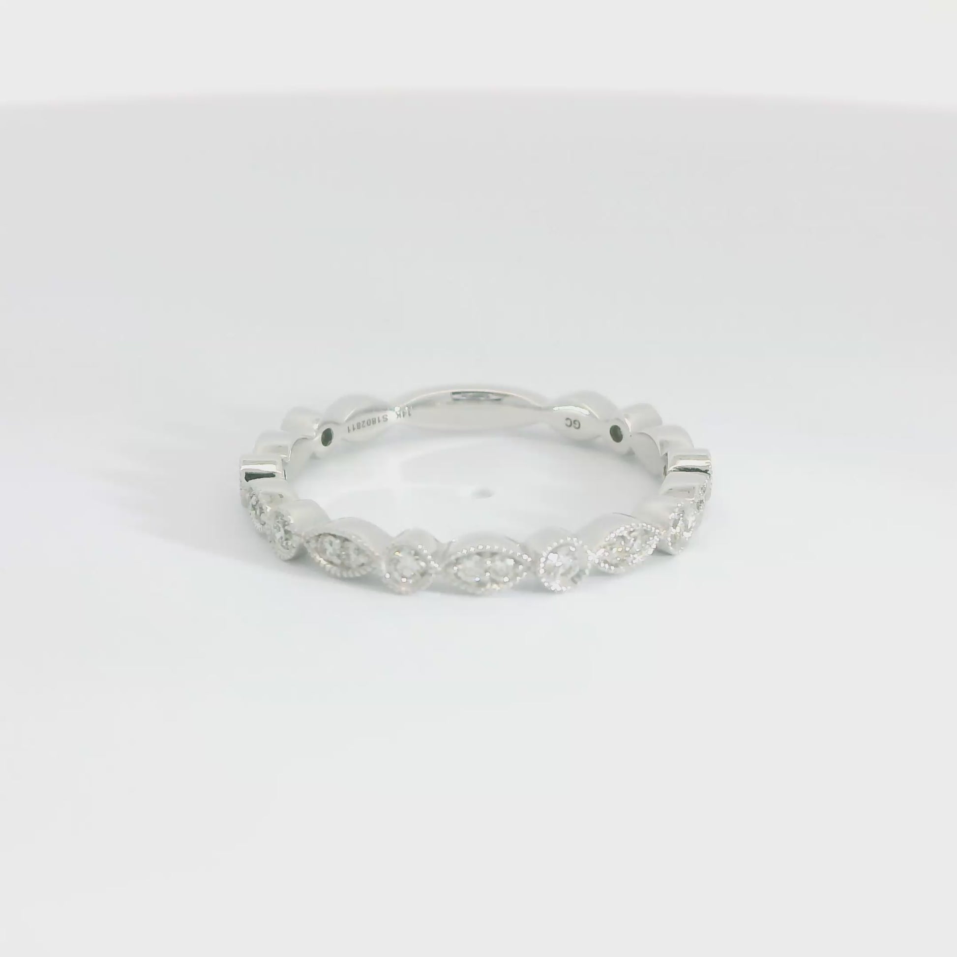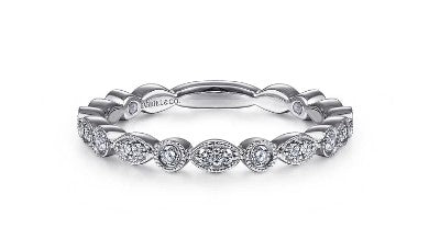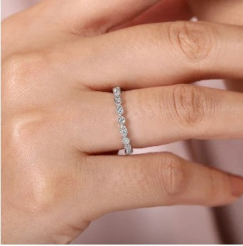This exquisite diamond ring features a delicate band adorned with sparkling round brilliant cut diamonds. Perfect for adding a touch of elegance to any outfit, its timeless design ensures it will be cherished for years to come. This beautiful ring can be worn on its own or stacked with other rings. The ring is made in 14K white gold and features 0.24tw of natural round brilliant cut diamonds. Gabriel & Co. # LR5701W45JJ This ring is available to be ordered in in 14K White, Yellow, Rose Gold, and Platinum.