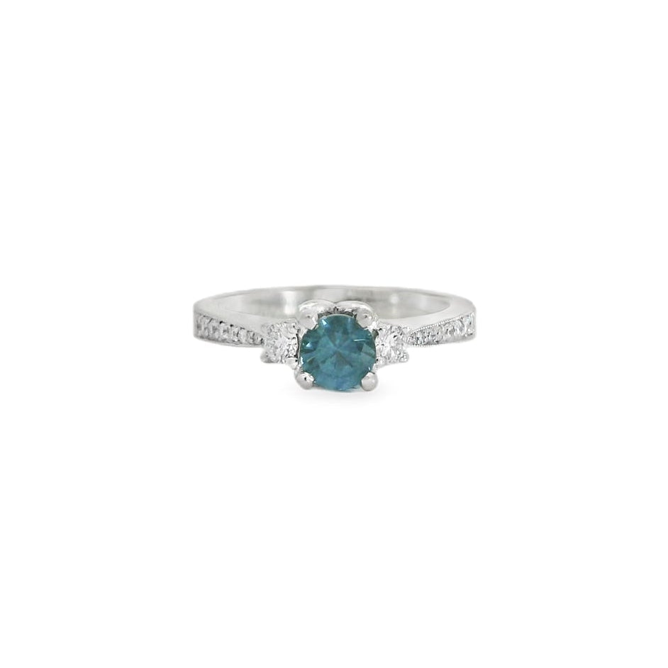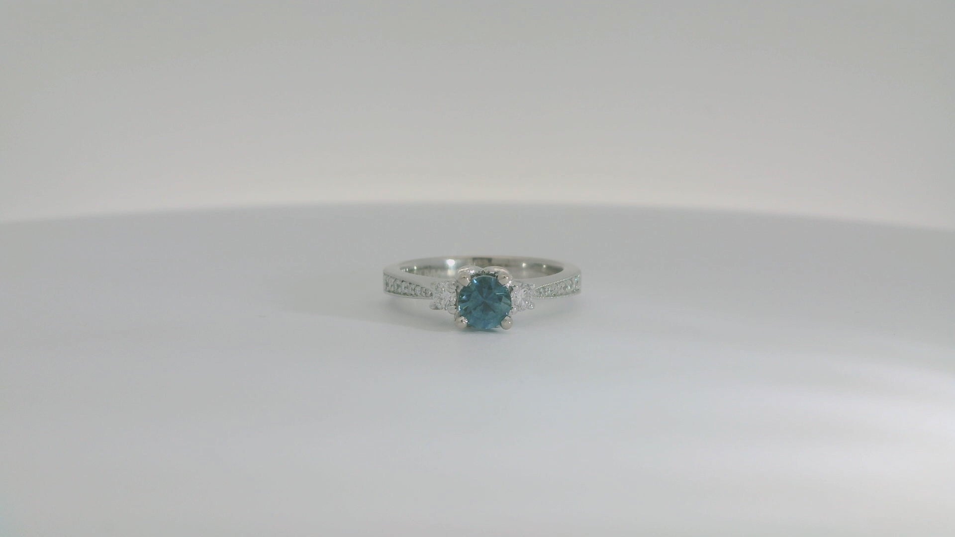 This refined ring showcases a medium blue Montana sapphire and natural diamonds, meticulously set in radiant white gold. The round brilliant cut sapphire is expertly faceted to maximize its natural beauty, displaying exceptional clarity, polish, and symmetry. Complemented by sparkling diamonds, this sophisticated design features an 18K white gold setting with a .65ct Montana sapphire and a total of 0.31 carats in natural diamonds.