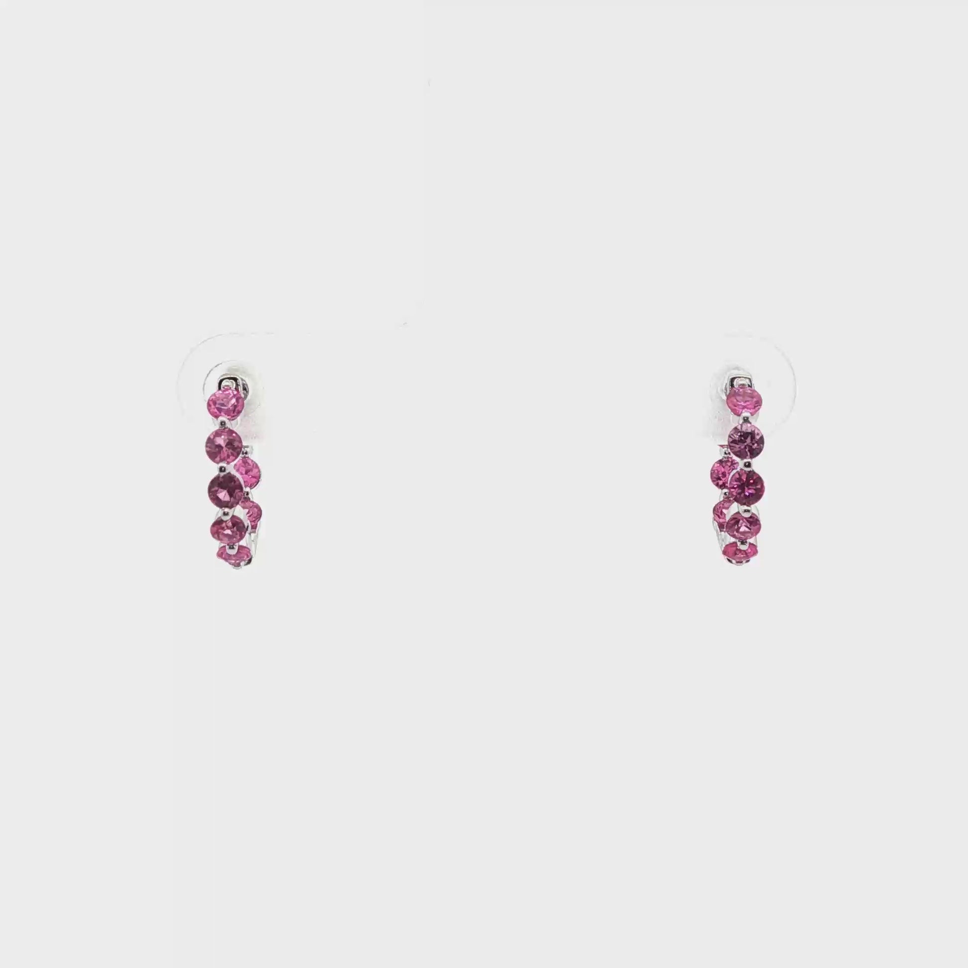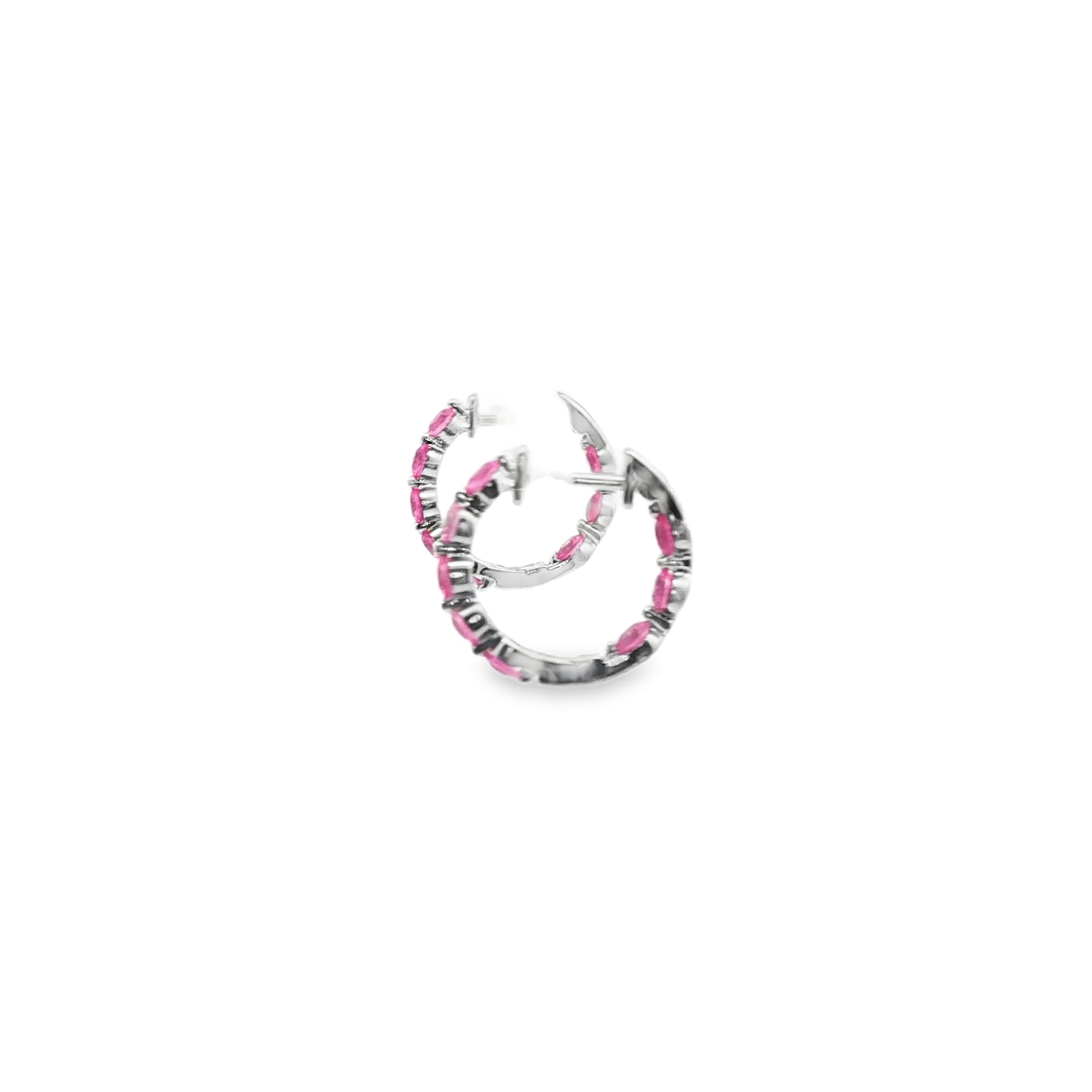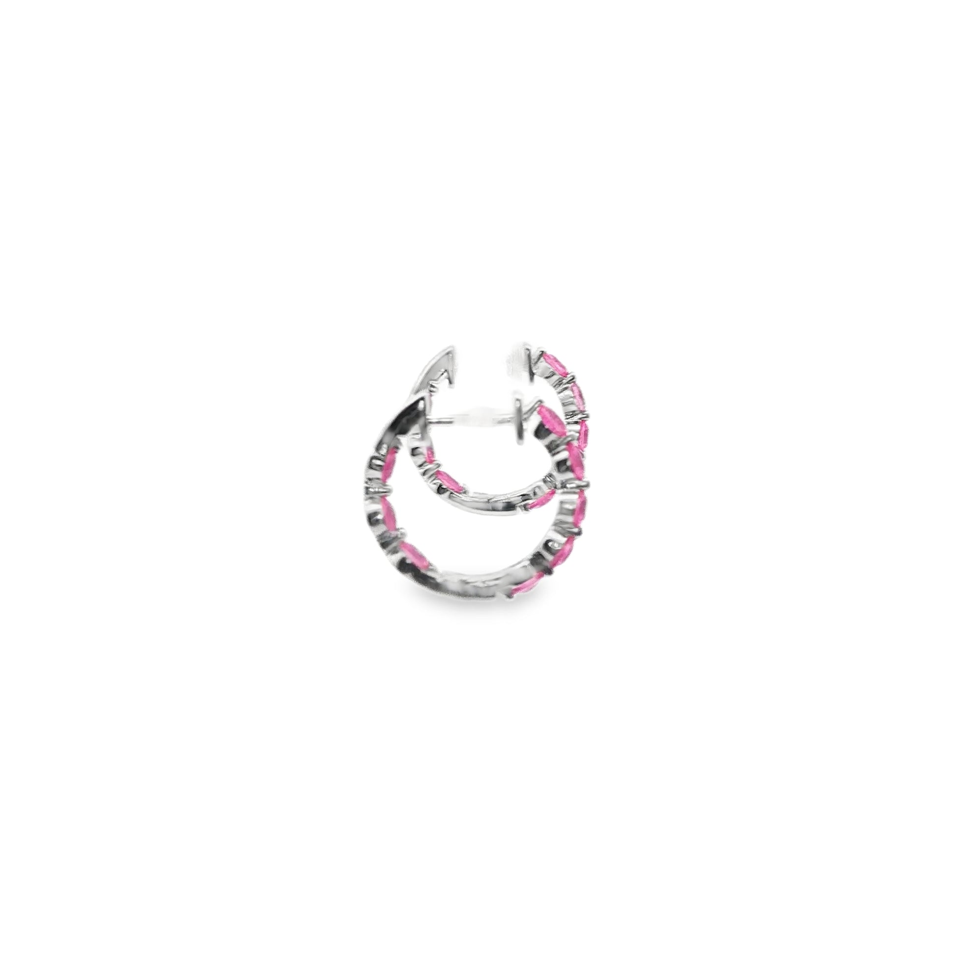 14K White Gold Pink Sapphire Inside-Out Hinged Hoop Earrings