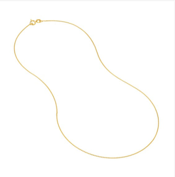 This gold cable chain necklace is a great classic style. Add your favorite charm or pendant for a customized look. Available in yellow or white gold, this chain is 0.9mm wide and fastens with a spring ring clasp.