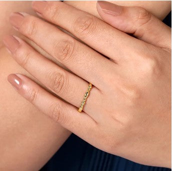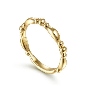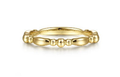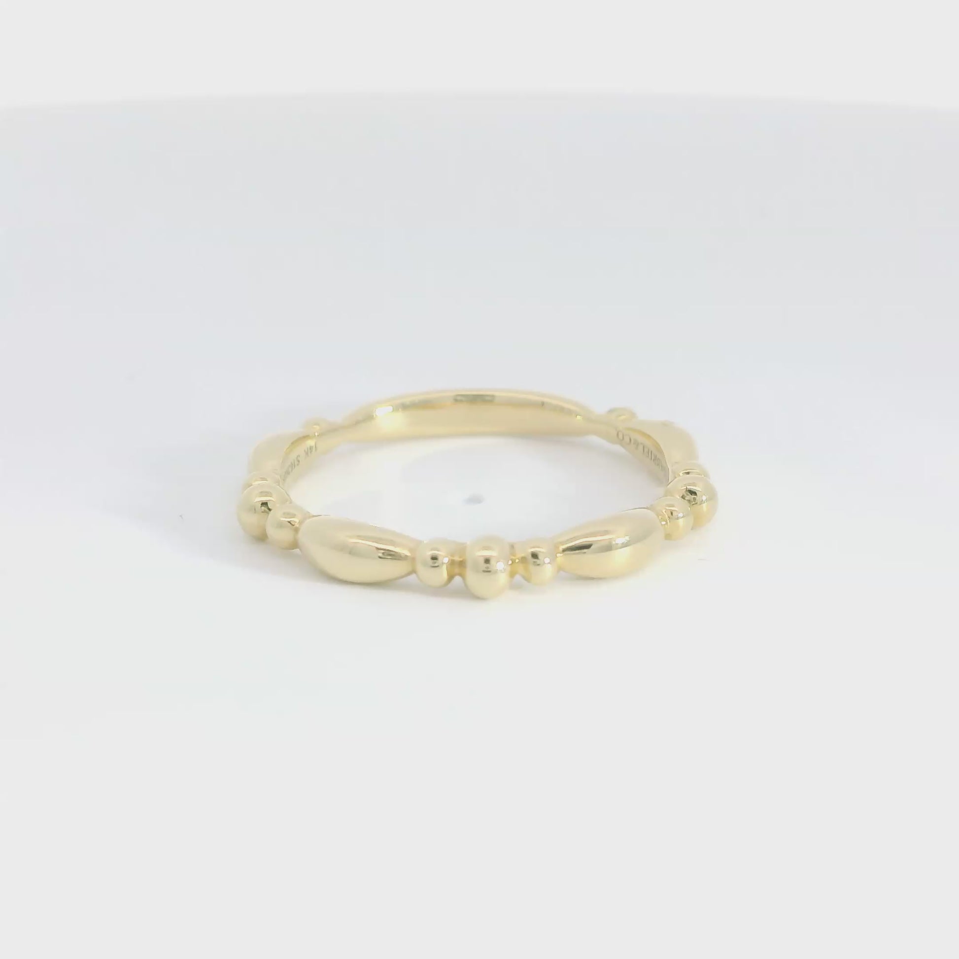 14K Yellow Gold Alternating Bar and Bujukan Bead Stackable Ring