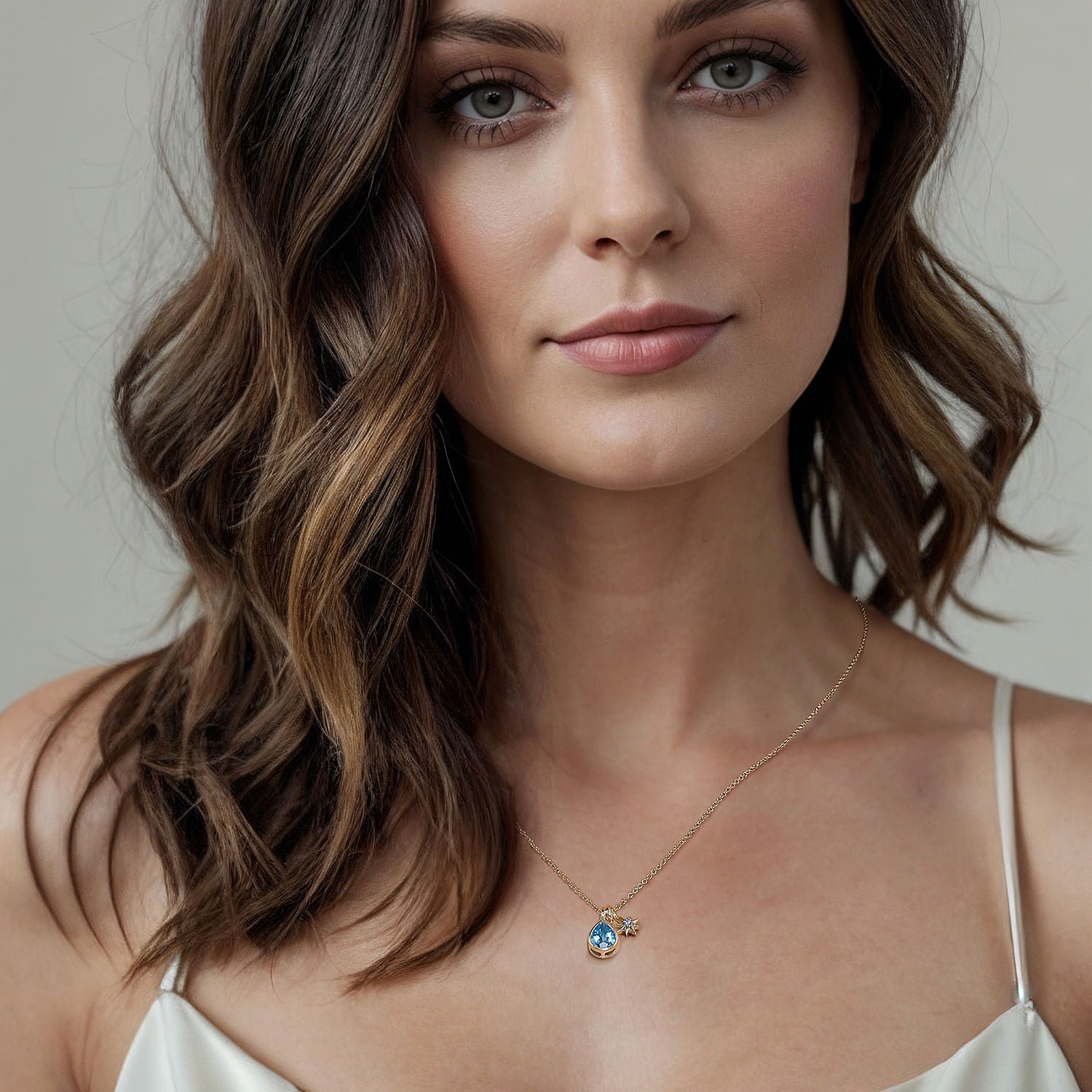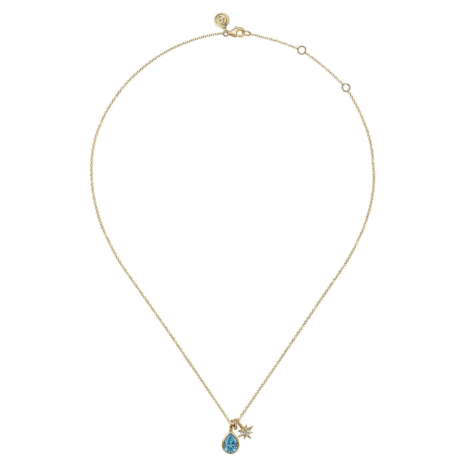 14K Yellow Gold Blue Topaz and Diamond Teardrop Pendant Necklace