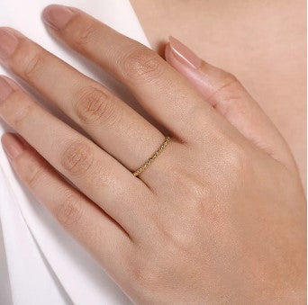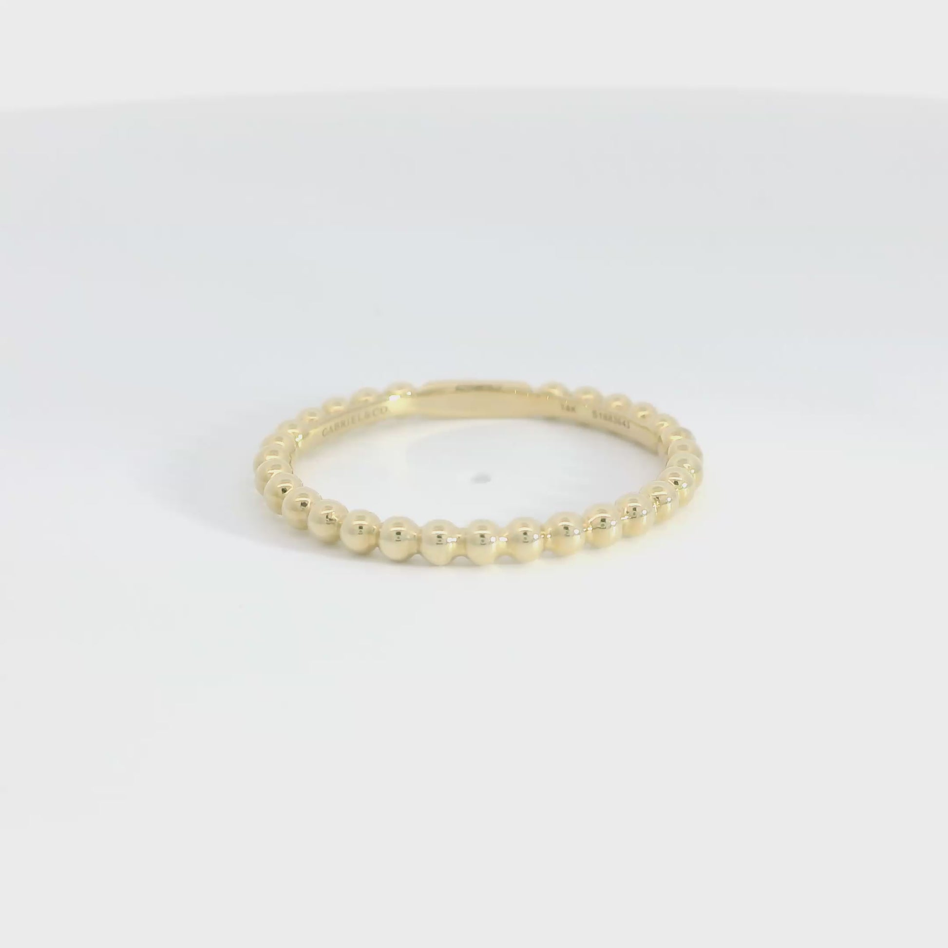 This exquisite gold beaded ring exudes elegance and simplicity, perfect for adding a touch of sophistication to any outfit. Its delicate design makes it an ideal choice for both everyday wear and special occasions. This beautiful ring can be worn on its own or stacked with other rings. Gabriel & Co. # LR51172Y4JJJ