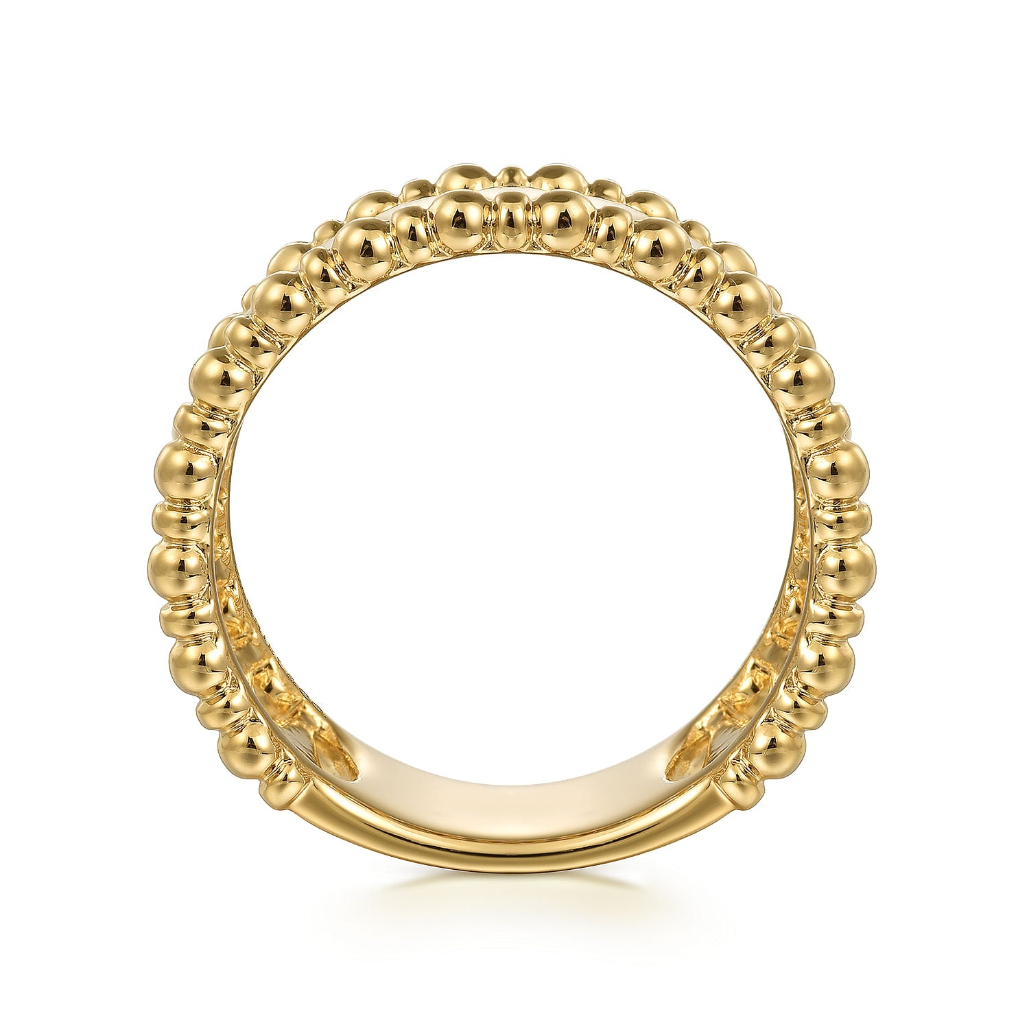 Expertly crafted with 14K yellow gold, this Bujukan ring boasts an elegant wide band design. Adorned with elongated diamond shapes and a beaded border, this ring exudes a classic and luxurious feel. Upgrade your jewelry collection with this timeless piece.