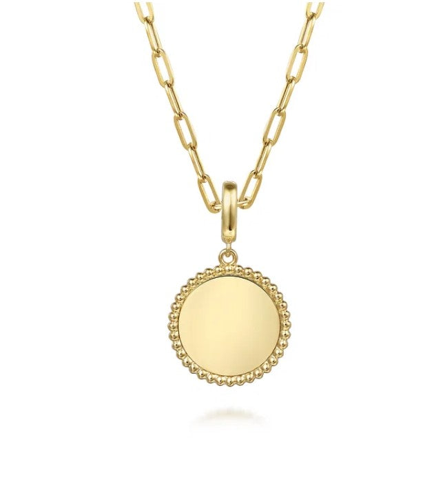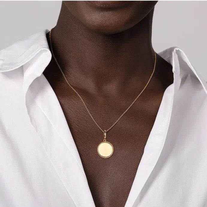 14K Yellow Gold Bujukan Round Personalized Medallion Pendant in size 18mm