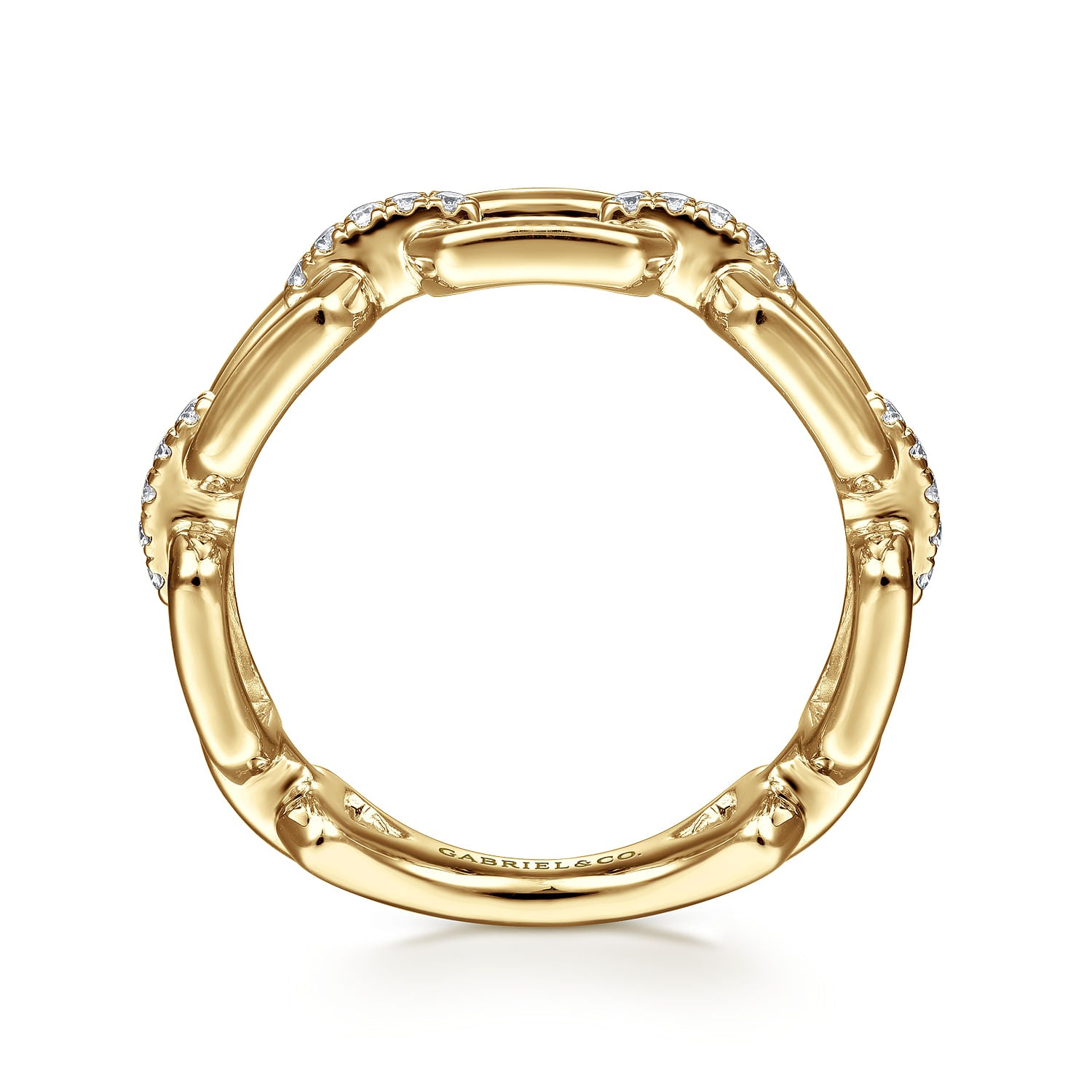 14K Yellow Gold Chain Link Stackable Ring Band with Diamond Connectors