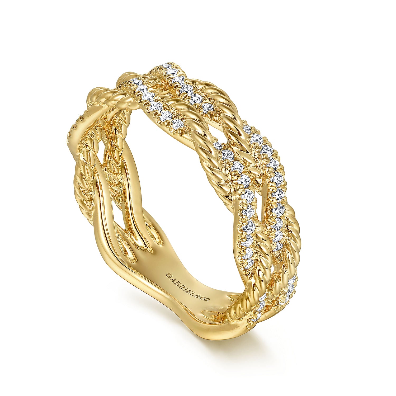 14K Yellow Gold Diamond Twisted Ladies Ring