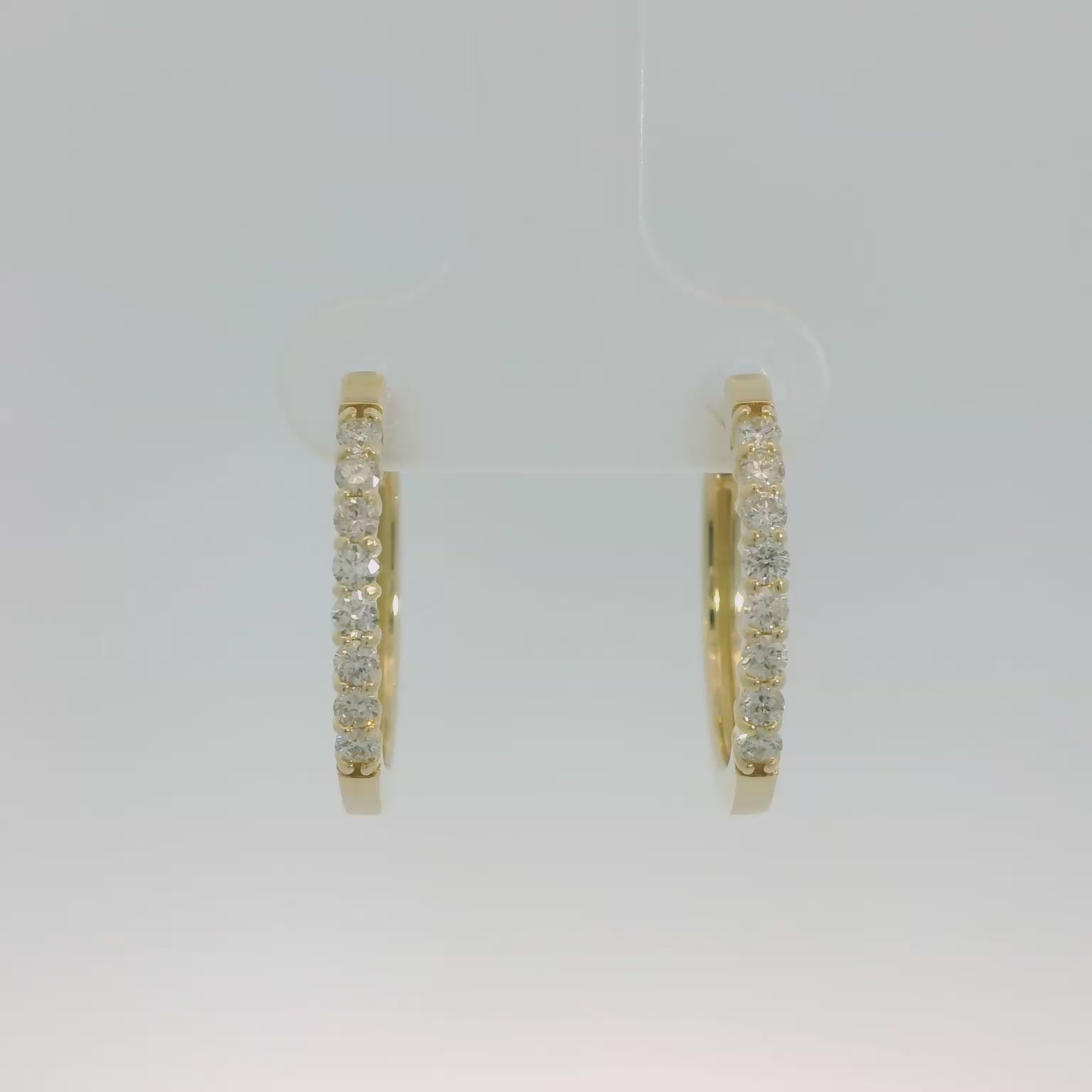 These stunning 14K yellow gold 0.48ct diamond hoop earrings are a timeless addition to any jewelry collection. Crafted with precision, each earring features a row of sparkling diamonds set in a sleek gold band, offering both elegance and sophistication.