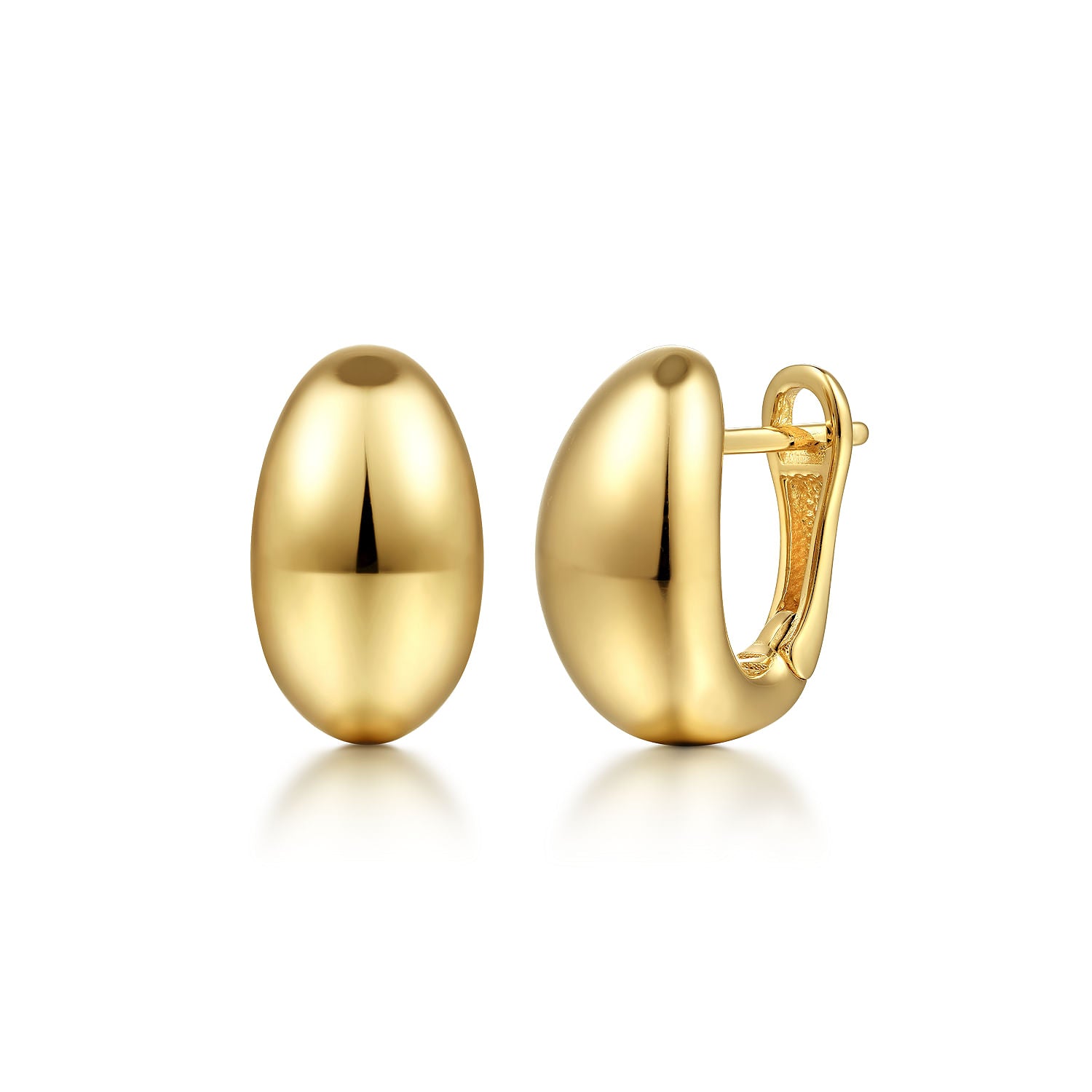 Elegant oval huggie earrings crafted in 14K yellow gold, measuring 17.1mm in length and 9.8mm in width. Featuring a convenient hinged back closure, these versatile pieces transition seamlessly from daily wear to formal events. The timeless design combines contemporary styling with enduring appeal, making them a refined addition to any jewelry collection.