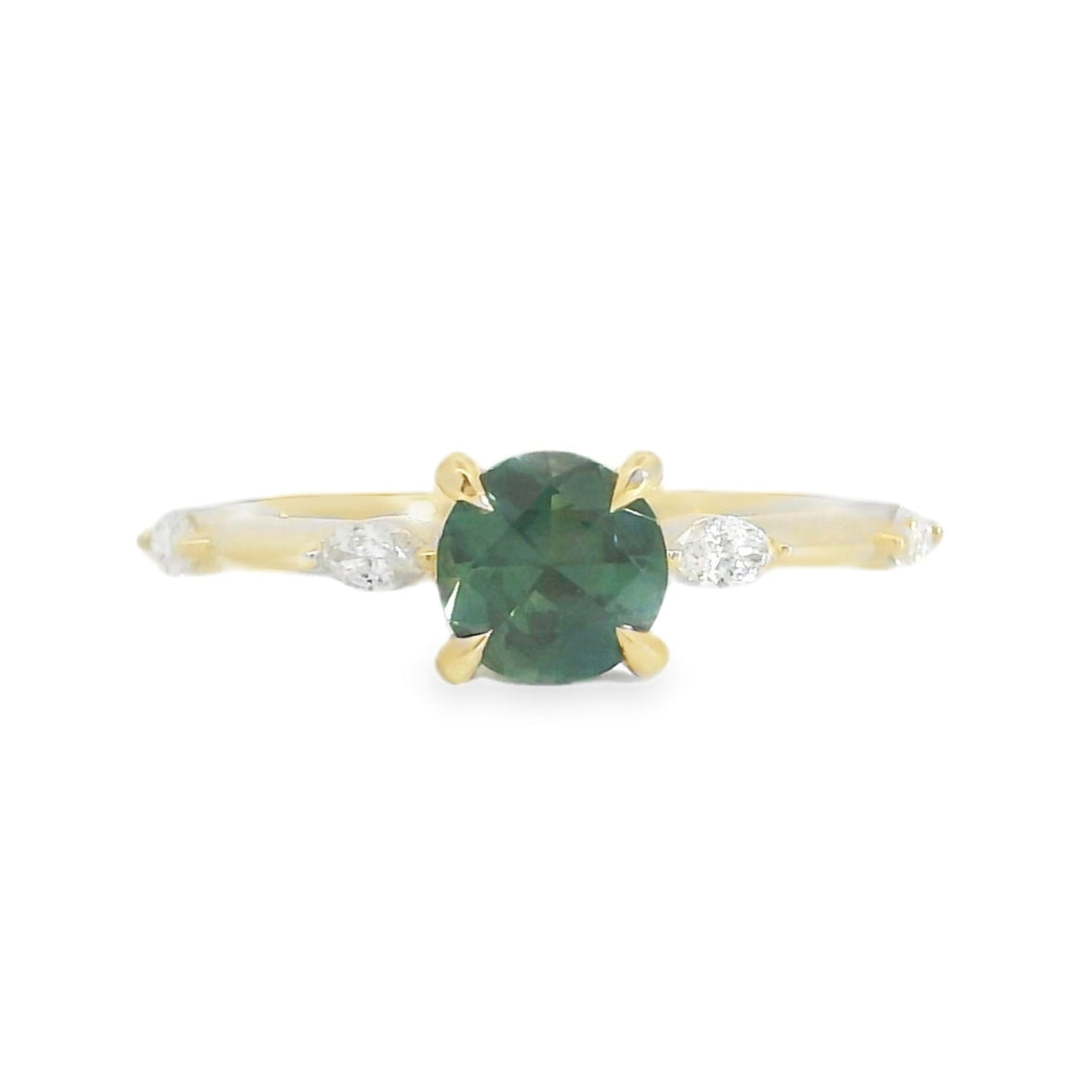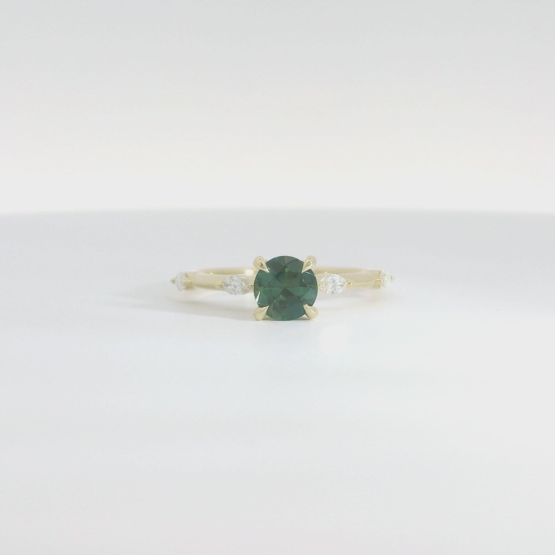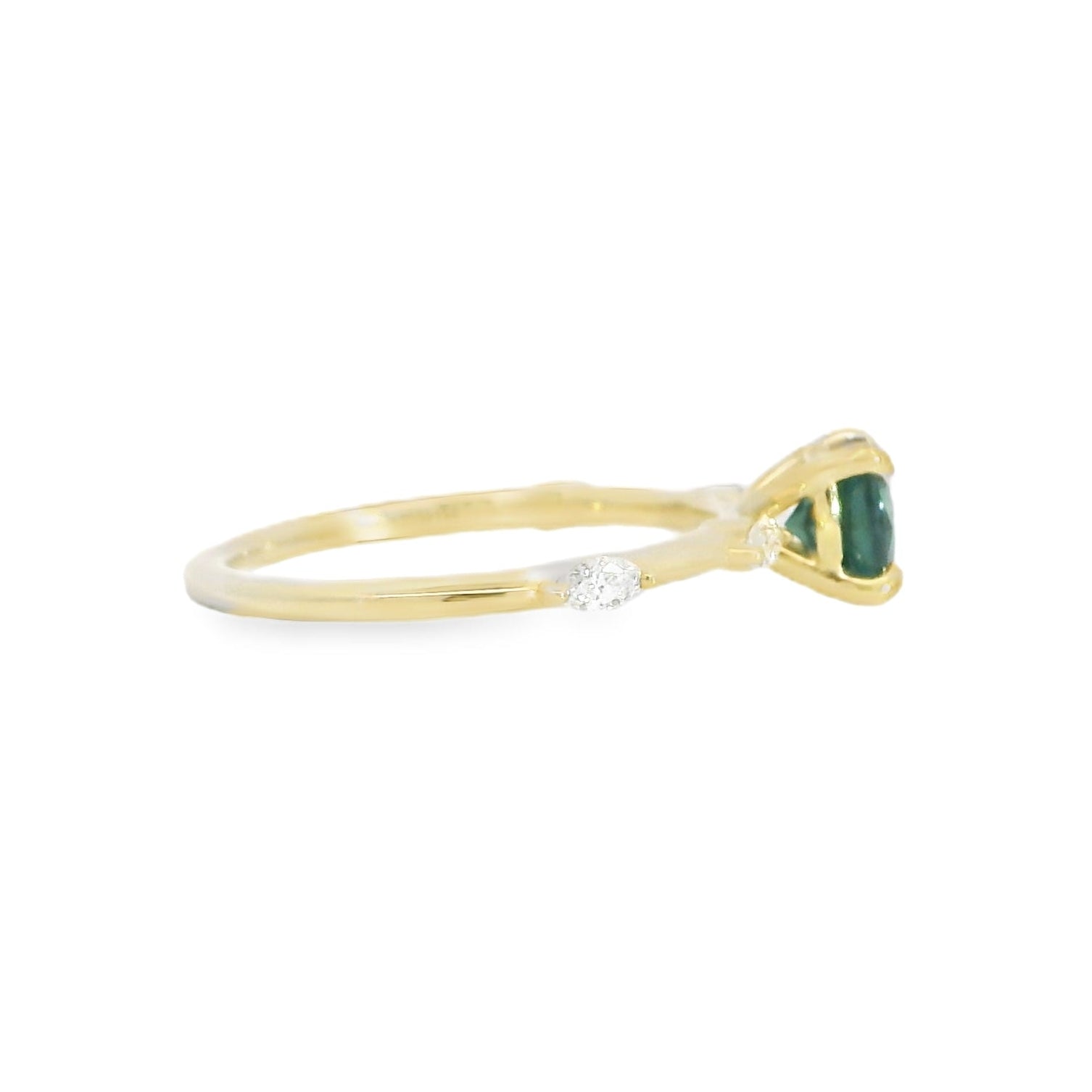 14K Yellow Gold Teal Sapphire & Diamond ring