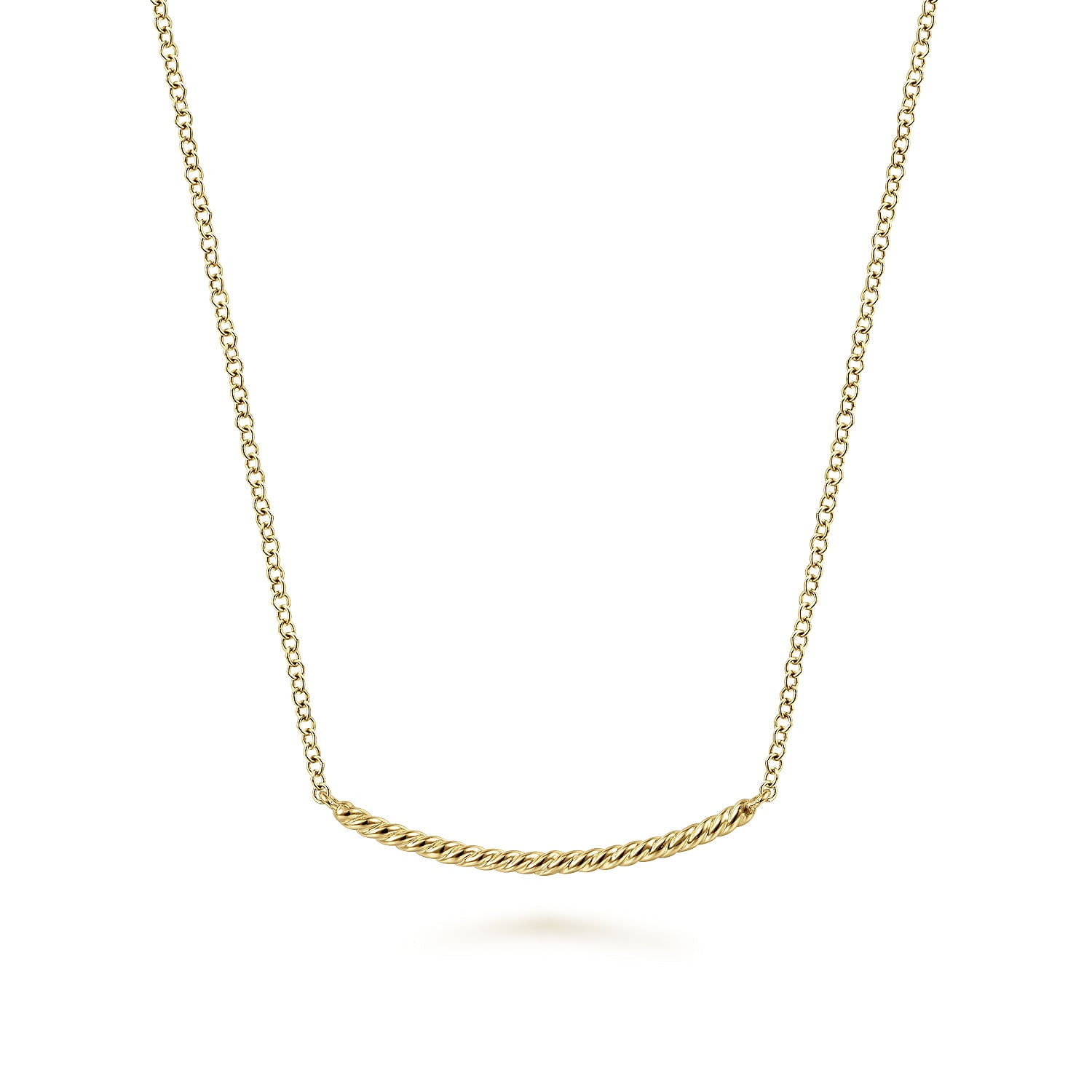 14K Yellow Gold Twisted Rope Curved Bar Necklace