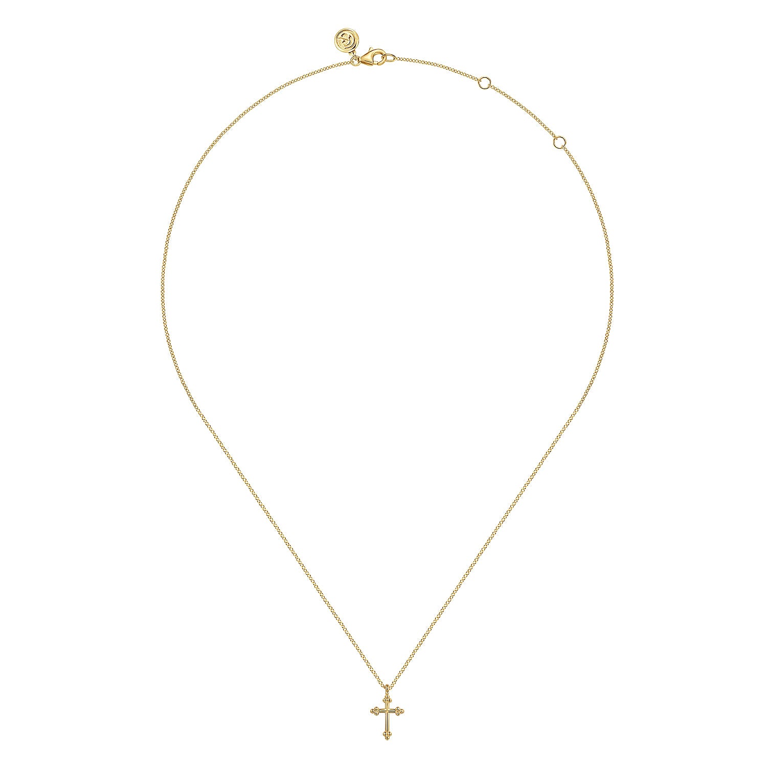 Discover elegance through simplicity with our 14K Yellow Plain Gold Bujukan 12mm Cross Necklace. From the renowned Gabriel Gold division and Bujukan collection, this pendant features a stunning 14k yellow gold design. Elevate your style with this timeless piece.