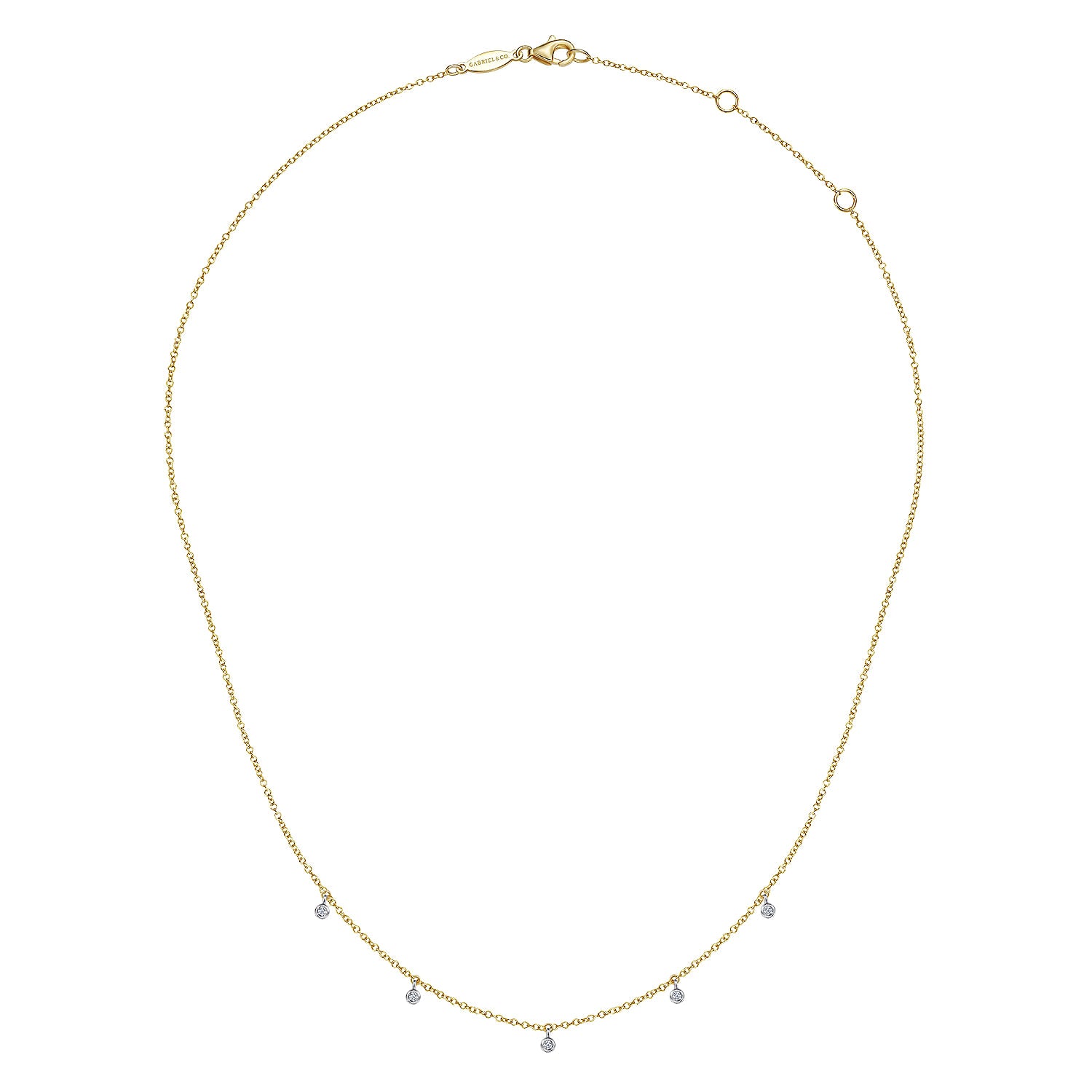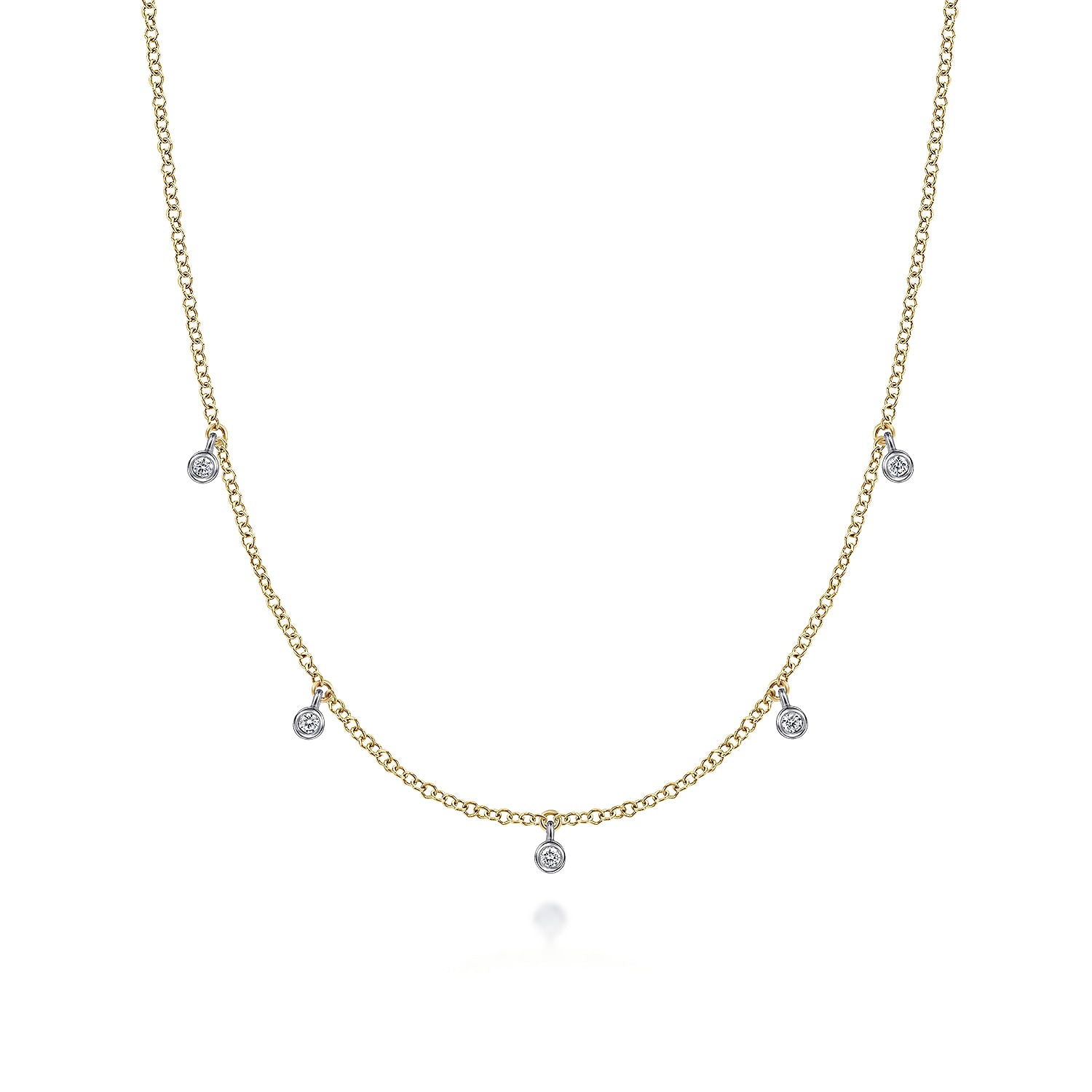 14K Yellow-White Gold Diamond Stations Droplet Necklace