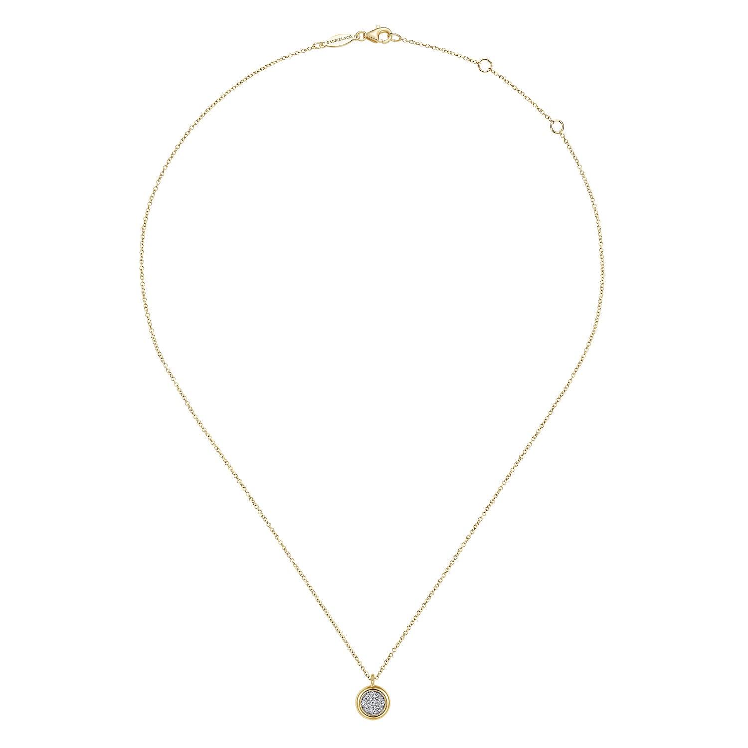 14K Yellow-White Gold Round Pave Diamond Cluster Pendant Necklace with Bezel Frame