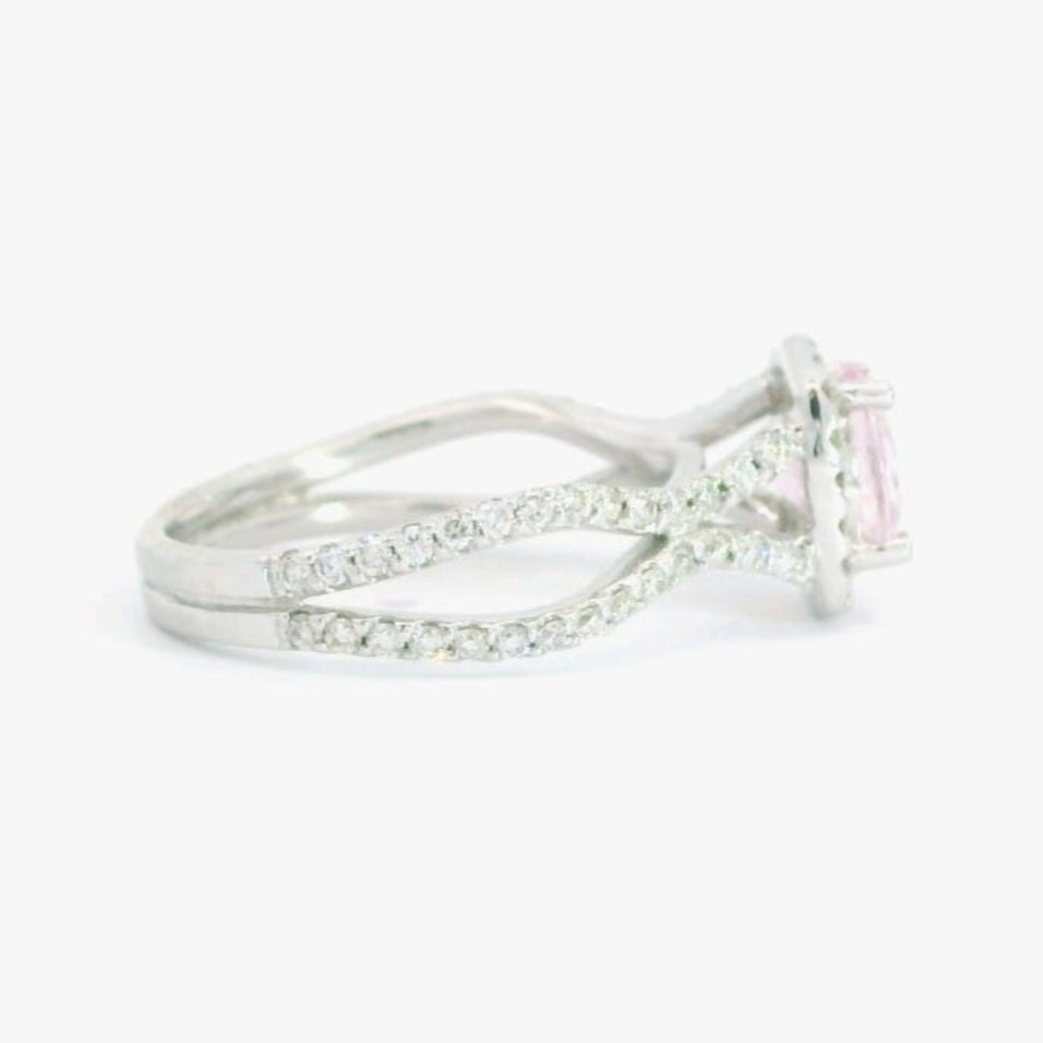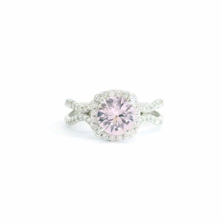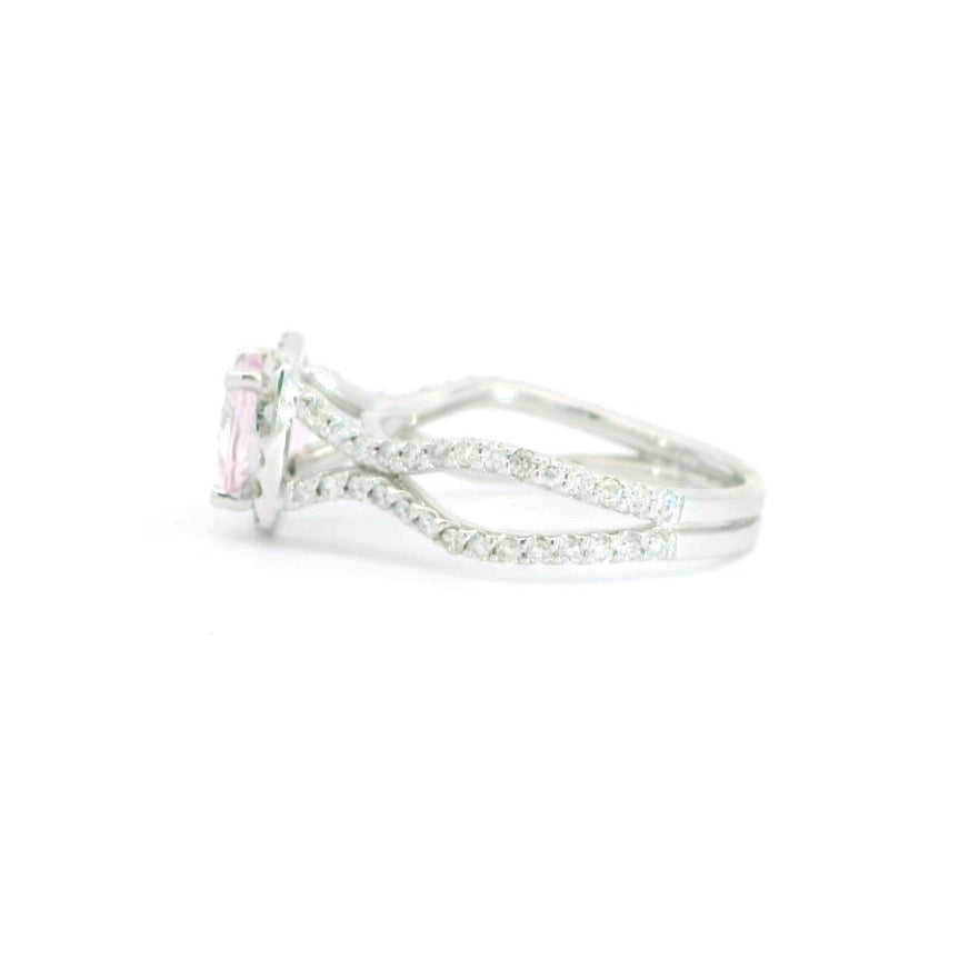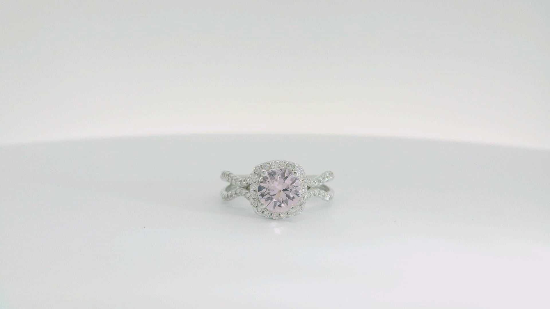 This elegant white gold engagement ring features a captivating round brilliant cut morganite gemstone, expertly crafted to amplify its natural sparkle. Its sophisticated design embodies enduring love and devotion, making it an ideal choice for a meaningful proposal. A classic piece destined to become a treasured heirloom.