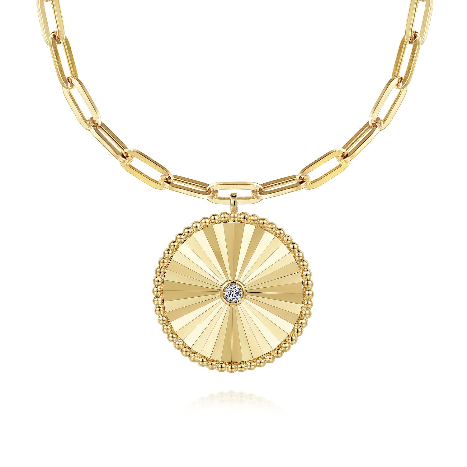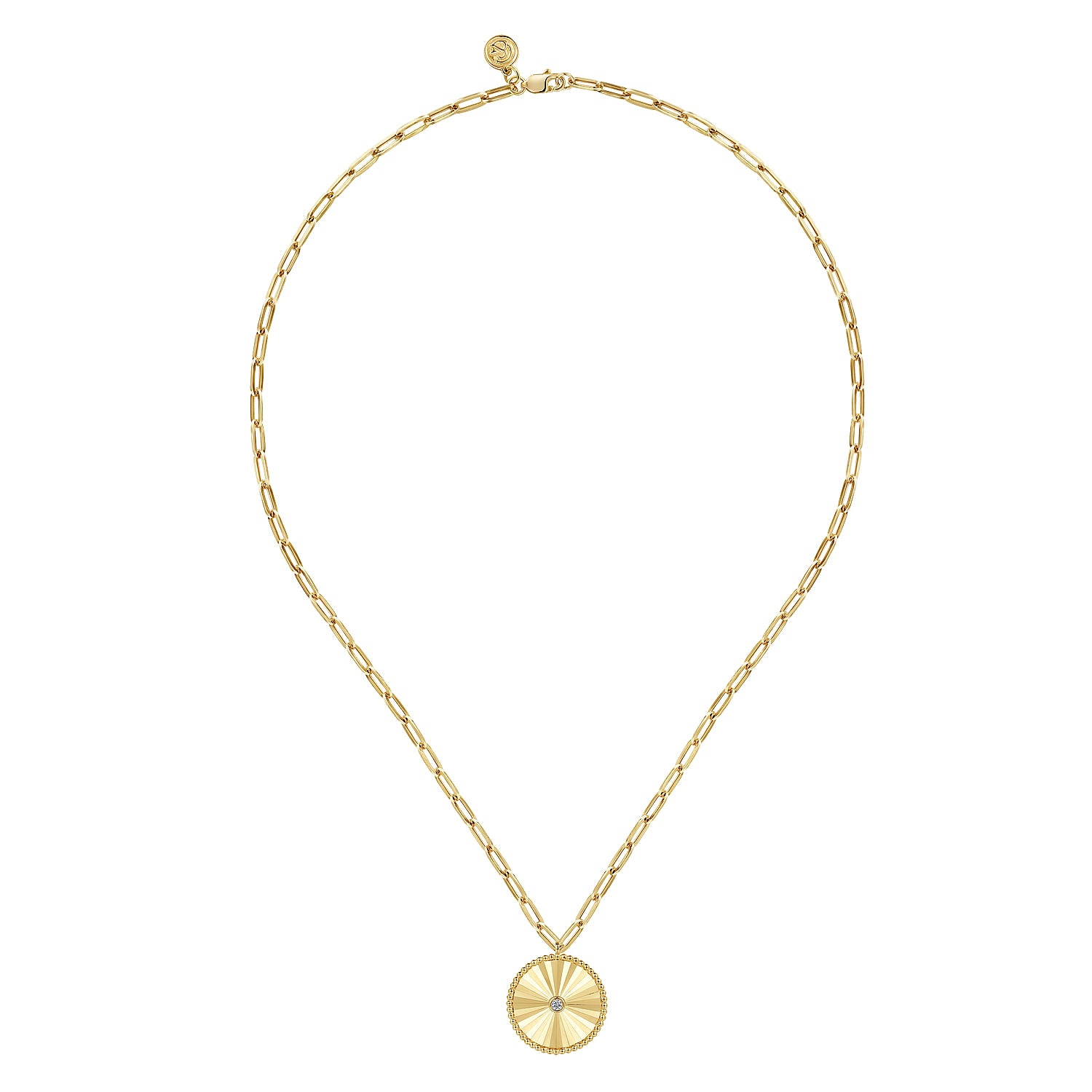 Diamond Cut - 18 inch 14K Yellow Gold Textured Diamond Medallion Hollow Chain Necklace