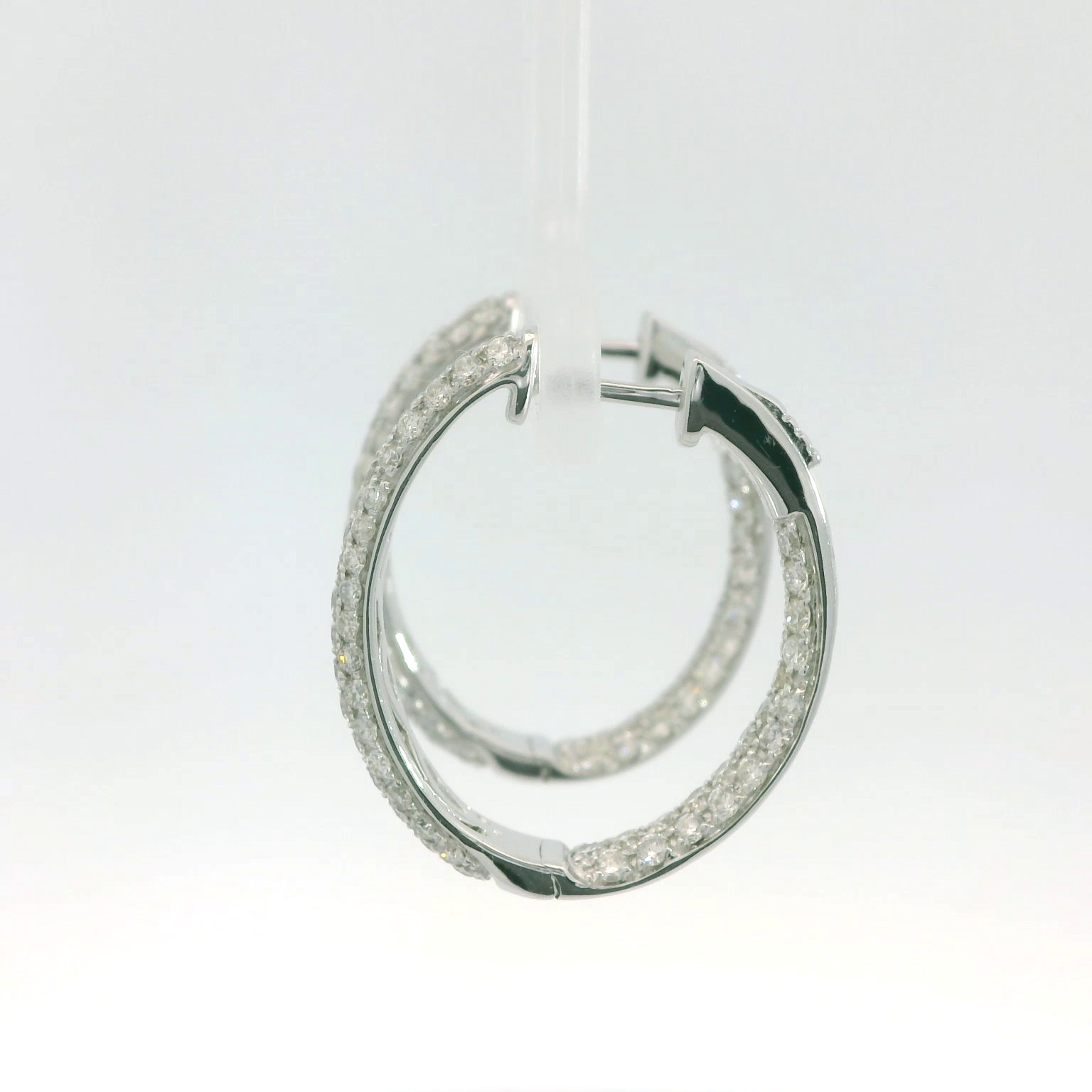 These stunning platinum 1.92ct diamond hoop earrings are the epitome of elegance and sophistication. Encrusted with sparkling natural diamonds, they catch the light beautifully, adding a touch of glamour to any outfit. Perfect for both everyday wear and special occasions.