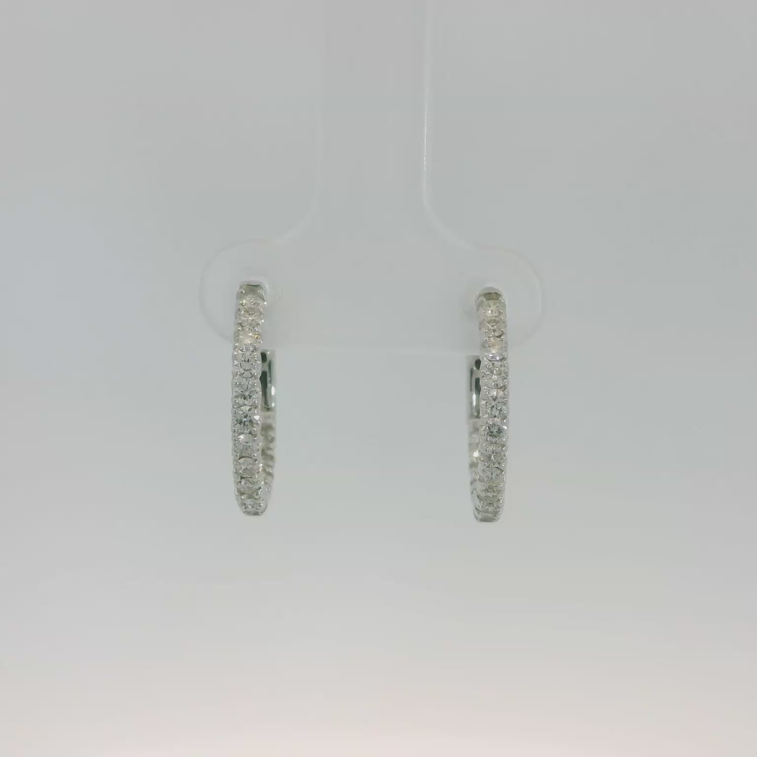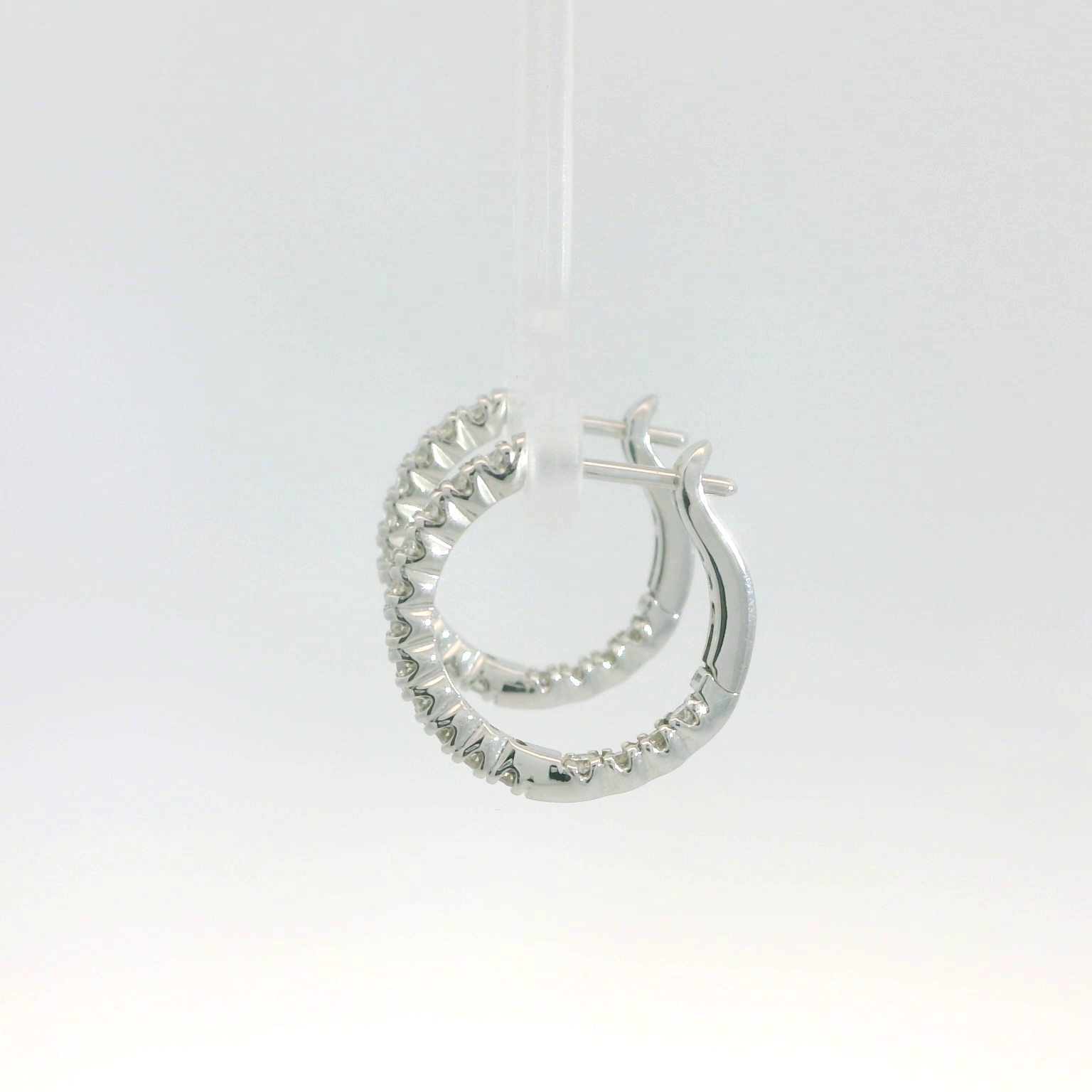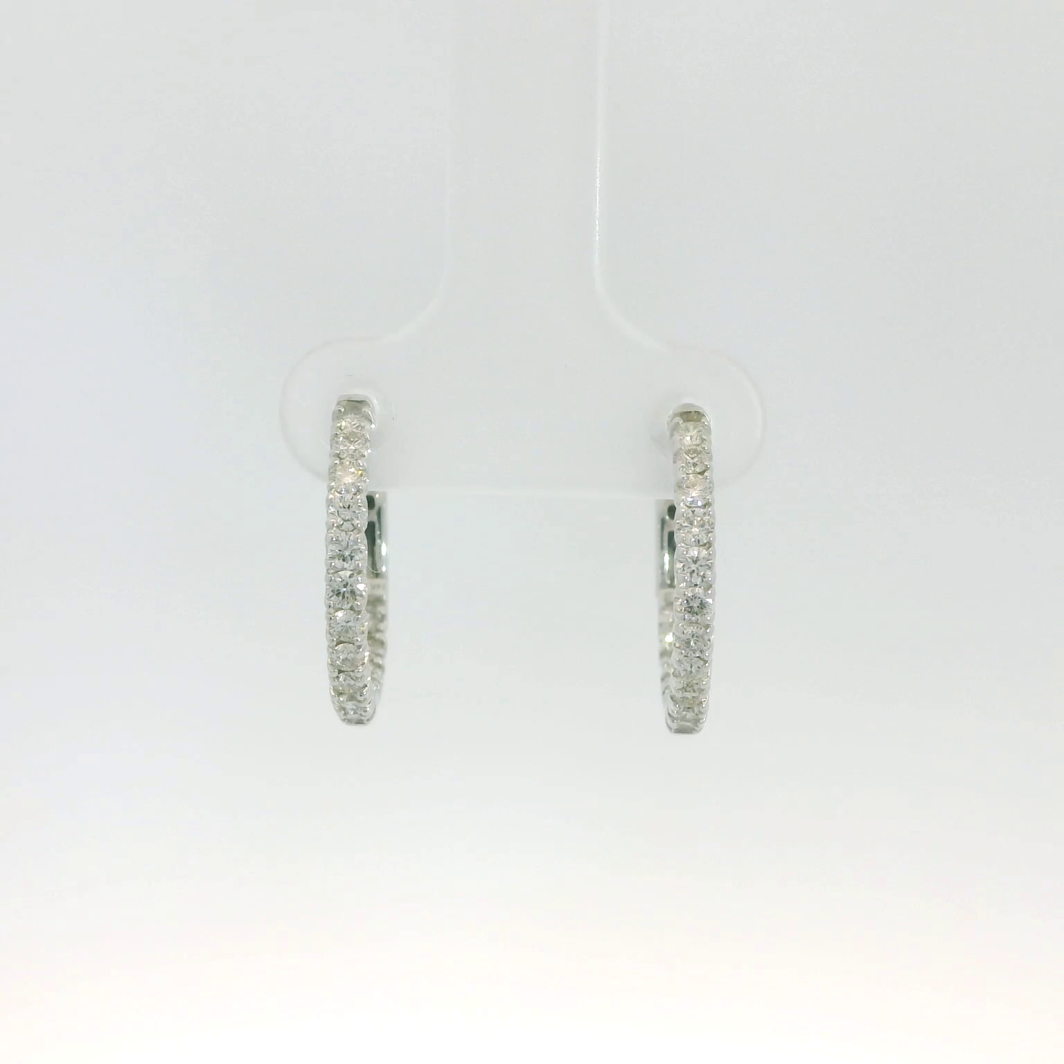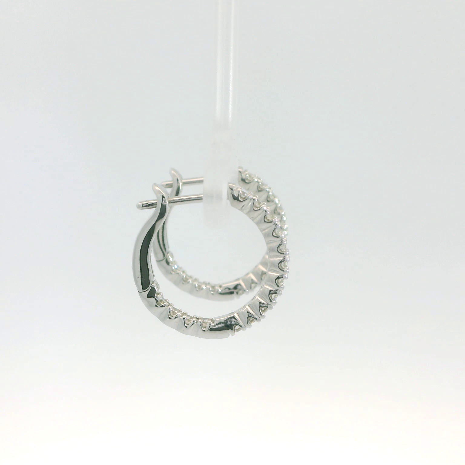 These stunning diamond hoop earrings are the epitome of elegance and sophistication. Each earring is meticulously crafted with sparkling diamonds that catch the light beautifully, making them perfect for any special occasion or everyday luxury. These beautiful earrings are made in 14K white gold and feature 0.68tw of natural diamonds.